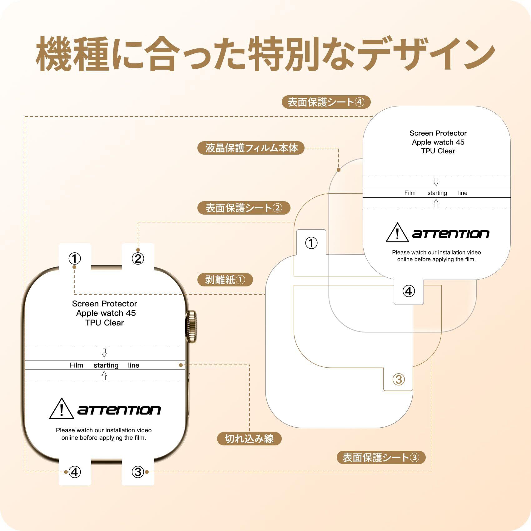 【機種に合った特別なデザイン】apple watch本体の縁まで適度なスペースを残すデザインとなっており、フィルムの剥がれや浮き上がりを防止し、apple watchケースと干渉せずに快適に使えます。]