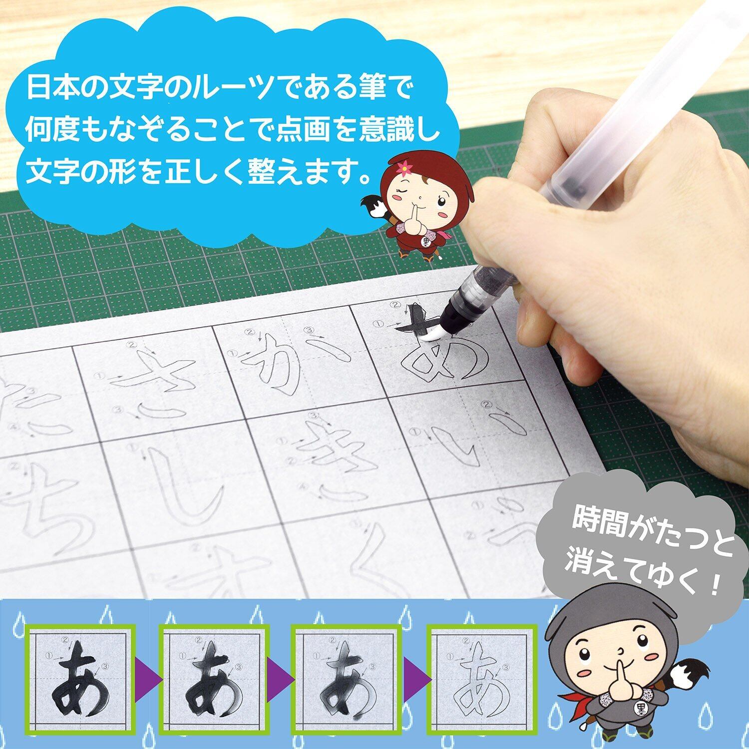 【特徴】水で書くことができるので周りを汚さず、4~5分で水が乾くと同時に消えるて何度でも使える水書きセット