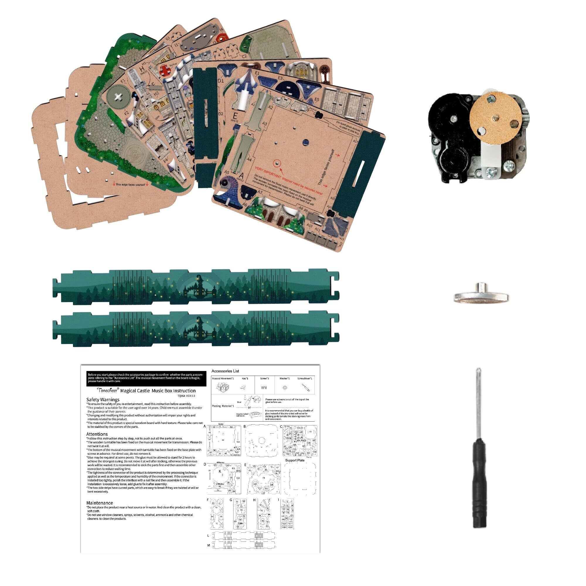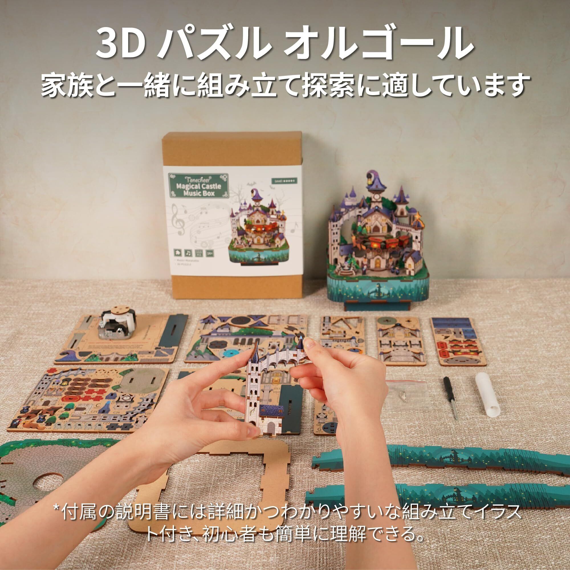Tonecheer オルゴール 立体パズル 3D木製パズル DIY音楽ボックス 組み立て 回転式オルゴール 時計仕掛け 発条 ウッド クラフト 女の子 大人 誕生日 ギフト(マジカルキャッスル)