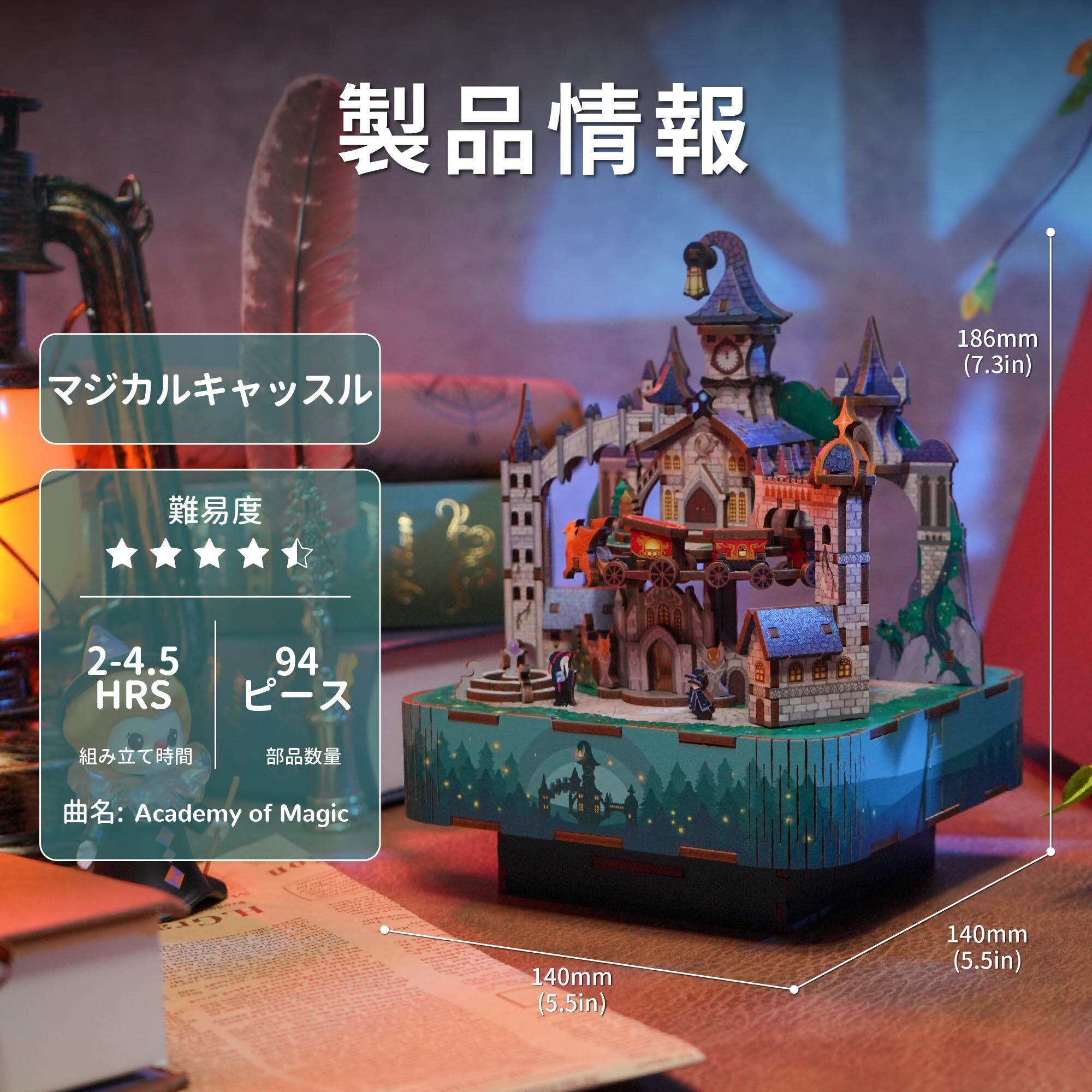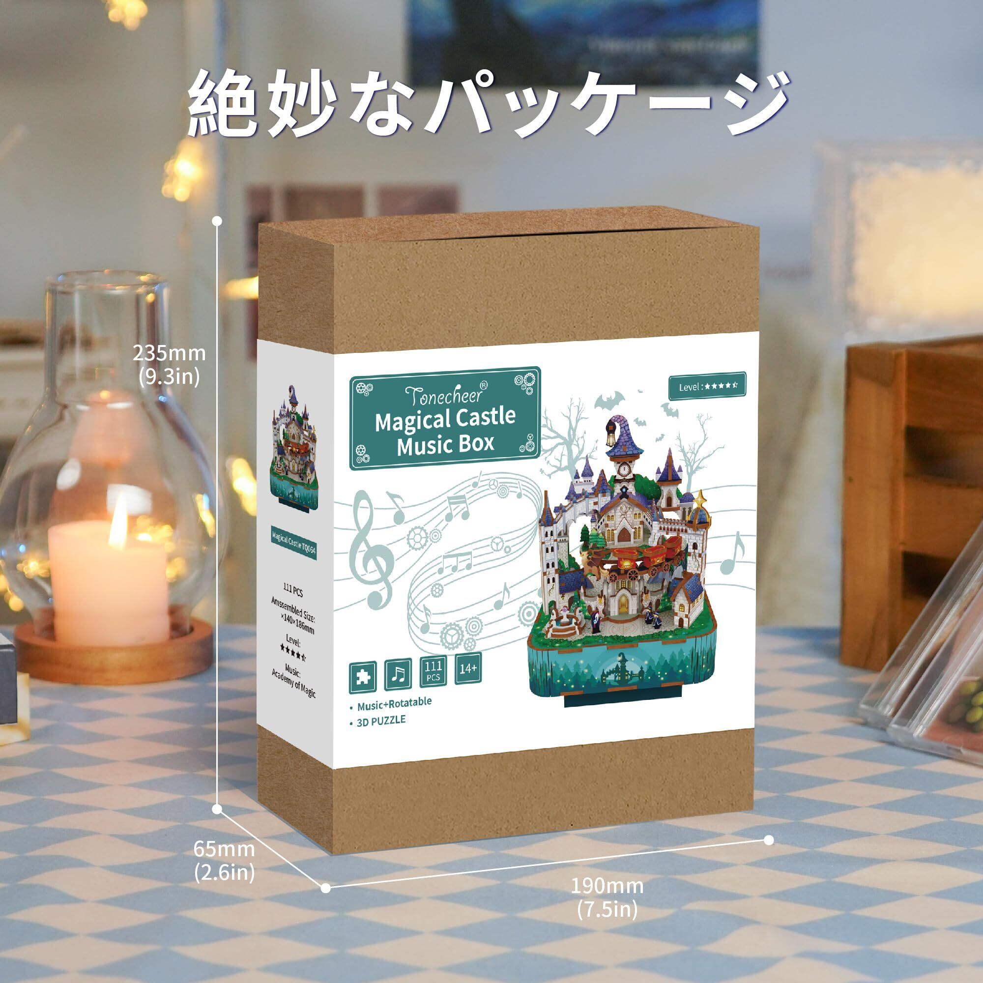 【マジカルキャッスル】Tonecheerオルゴールパズルには、うっそうとした森の奥深くに隠された神秘的なマジカルキャッスルは、入り口の鍵を開けるには特別な魔法のパスワードが必要だ。明るいホール、おしゃべりな帽子鐘楼、空飛ぶ車を運転するクールなグリフィンなど、ここには不思議なことがいろいろある。