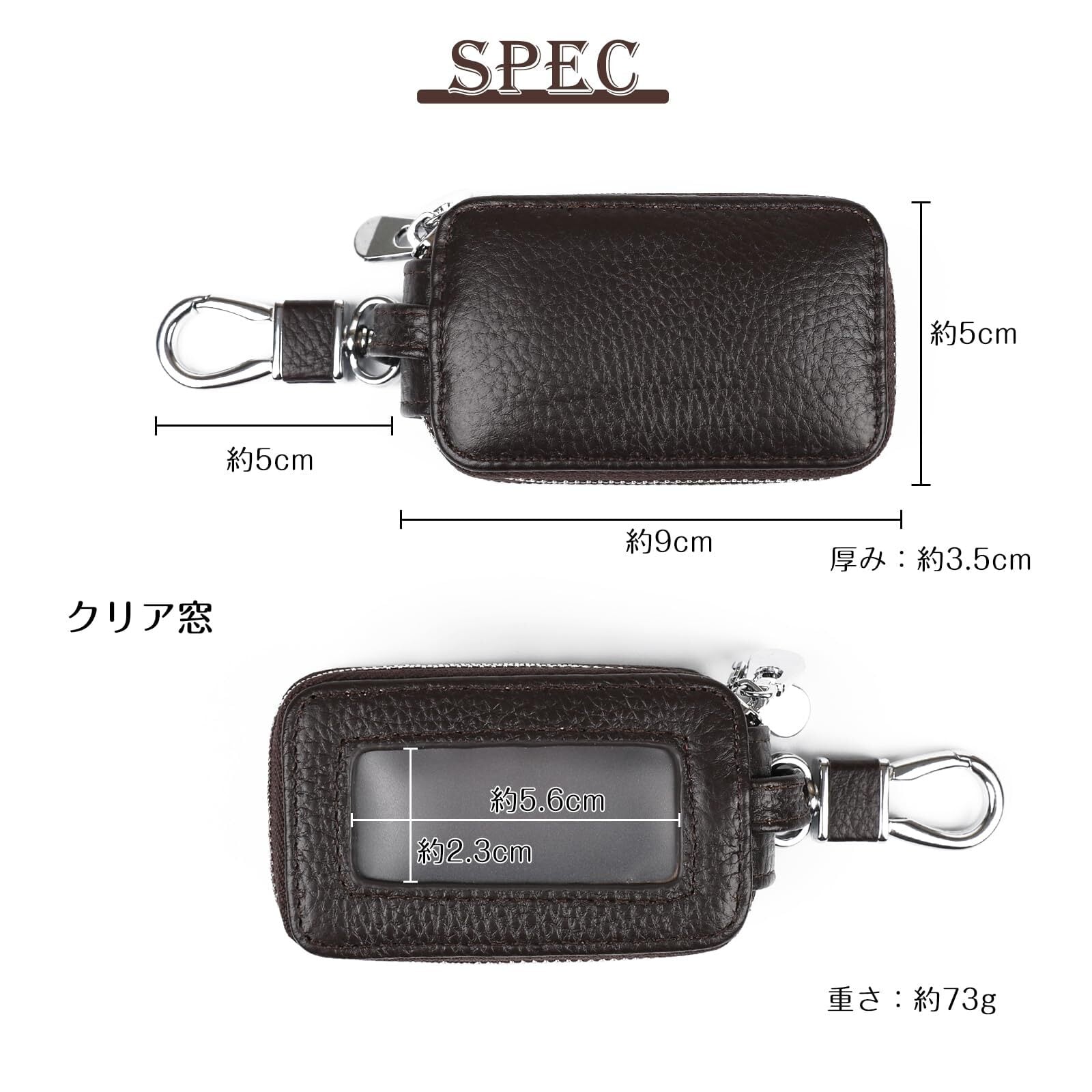 【サイズ情報】:コンパクトなサイズ(9cm×5cm×3.5cm)で、携帯性に優れています。重さ約73gで軽量なので、持ち運びに便利です。2つのキーチェーンが付属していますので、複数のキーを収納することができます。