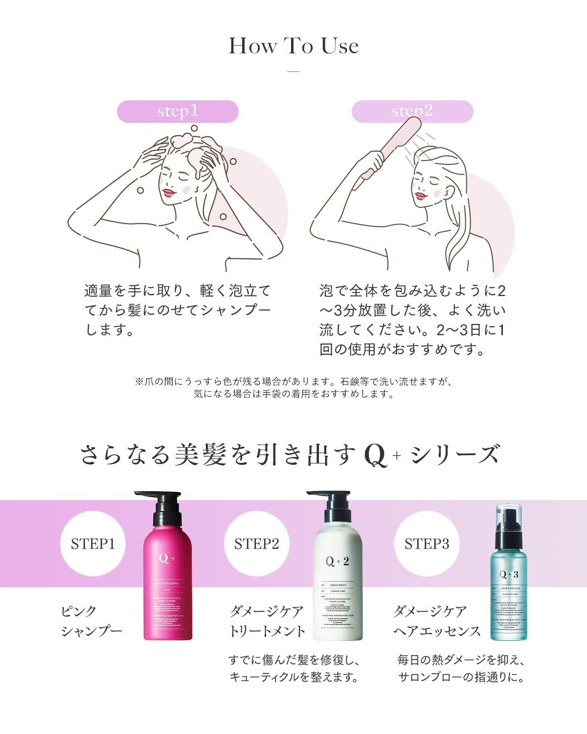 ✨【 サロン仕立ての髪色、そのままに。 】「カラーキープ×ダメージケア」を叶え、ツヤ感溢れるまとまり髪へ Q+( クオリタス ) のカラーシャンプー(ピンク)|●黄ばみやすい明るい髪色 ●色落ちしやすいピンクなどの暖色 の髪色にオススメ