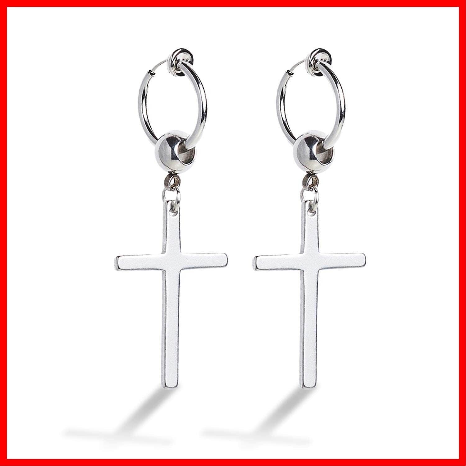 [Puente] ピアス穴不要 フェイクピアス 十字架 クロス イヤリング ノンホールピアス 両耳セット 十字架イヤリング ステンレス シルバー ボール 銀色 ピアス フープピアス リングピアス フープイヤリング リングイヤリング メンズ レディース