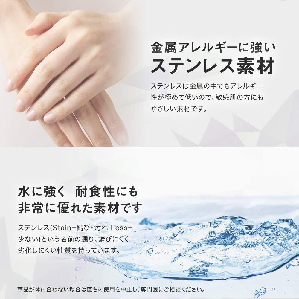 素材は金属アレルギーを引き起こしにくいステンレス素材を使用しております。またサビなどにも強いのでお手入れもとても簡単です。