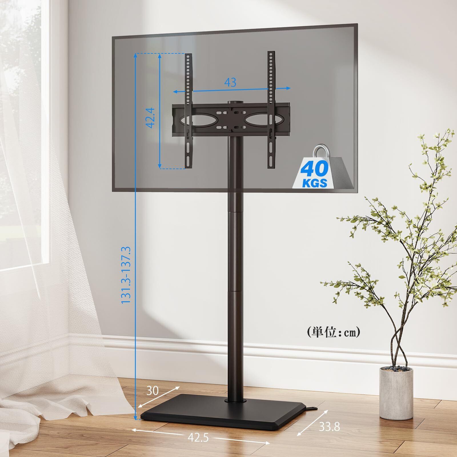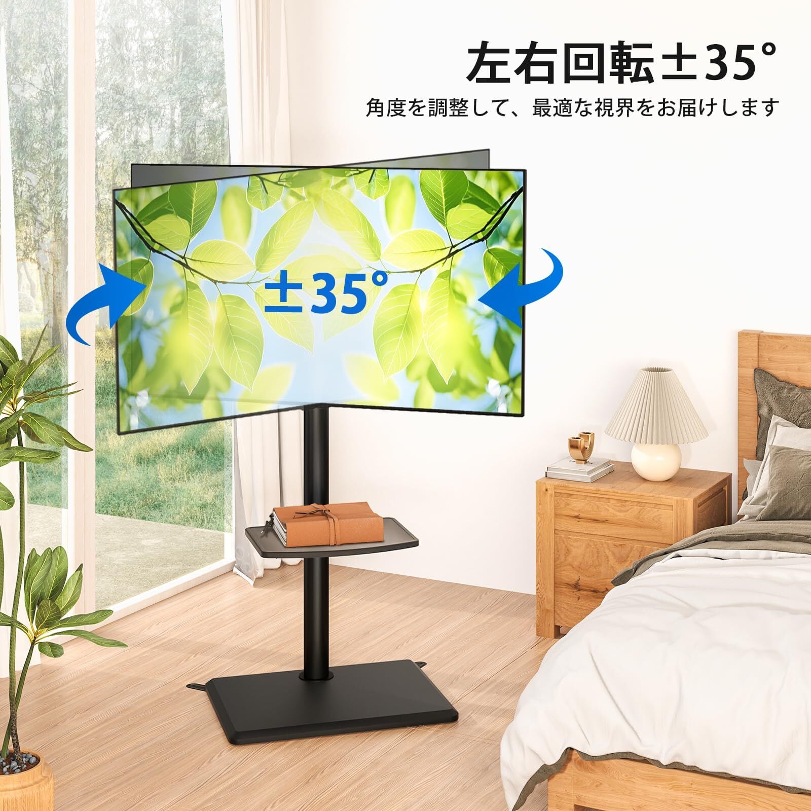 高さ調節、左右首振り:テレビ スタンドはブランケットが3段階で113.8から139.3 cmまで調整できます。左右角度35°変えられ、首振りが出来ます。リビングルームでもキッチンでも各部屋からテレビを快適に楽しめます。