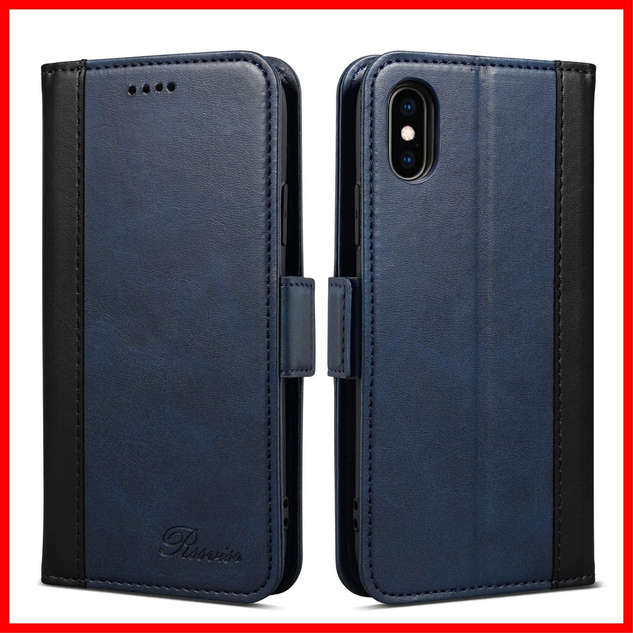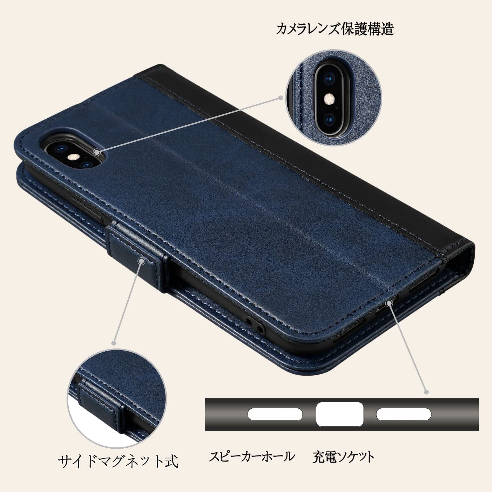 ● 商品名:[Rssviss] iPhone Xs ケース 手帳型 ワイヤレス充電対応 カード収納 スタンド機能付き ダークブルー