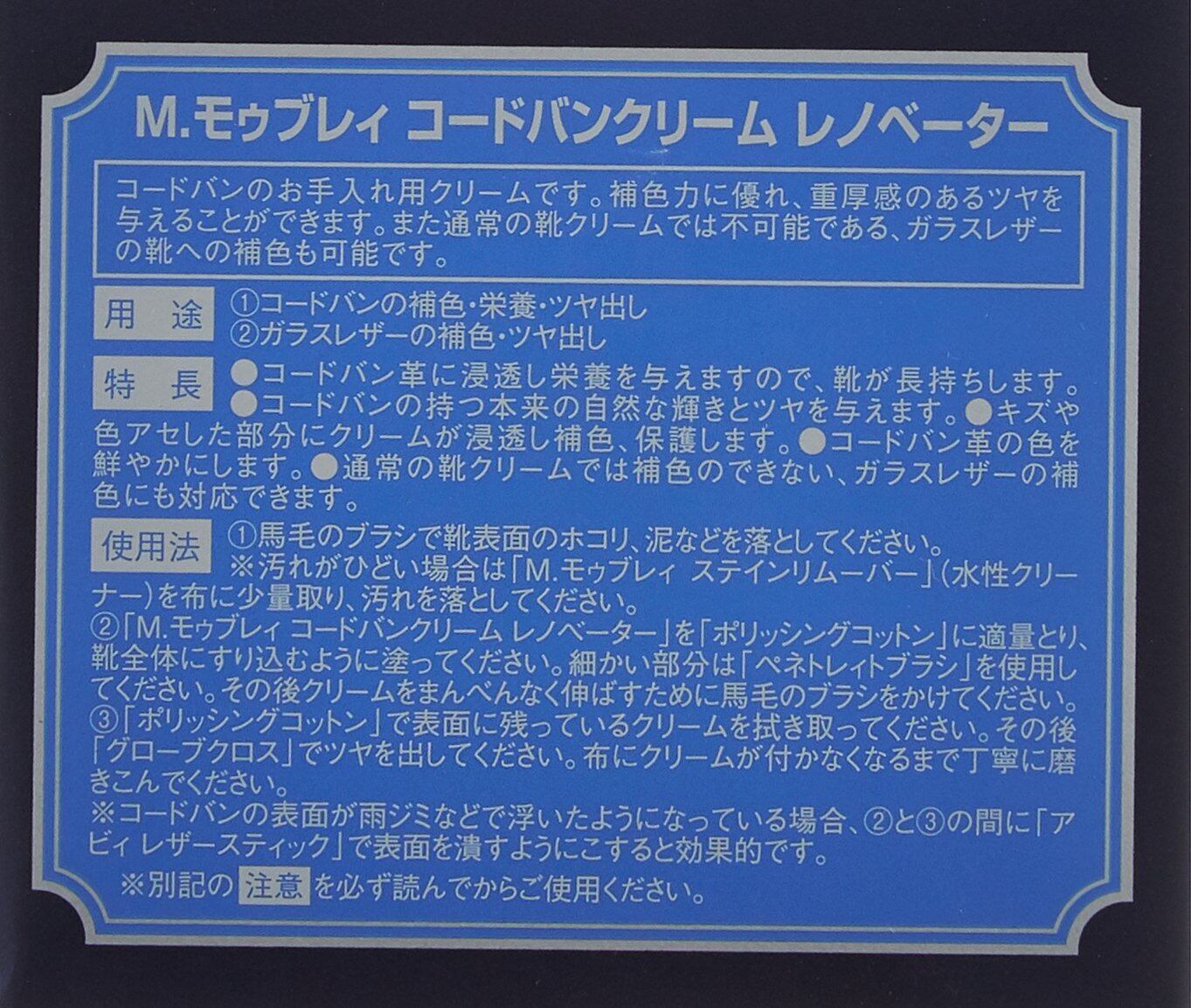 [M.モゥブレィ] クリーム コードバン・ガラスレザーケア コードバンクリームレノベーター 21055 メンズ