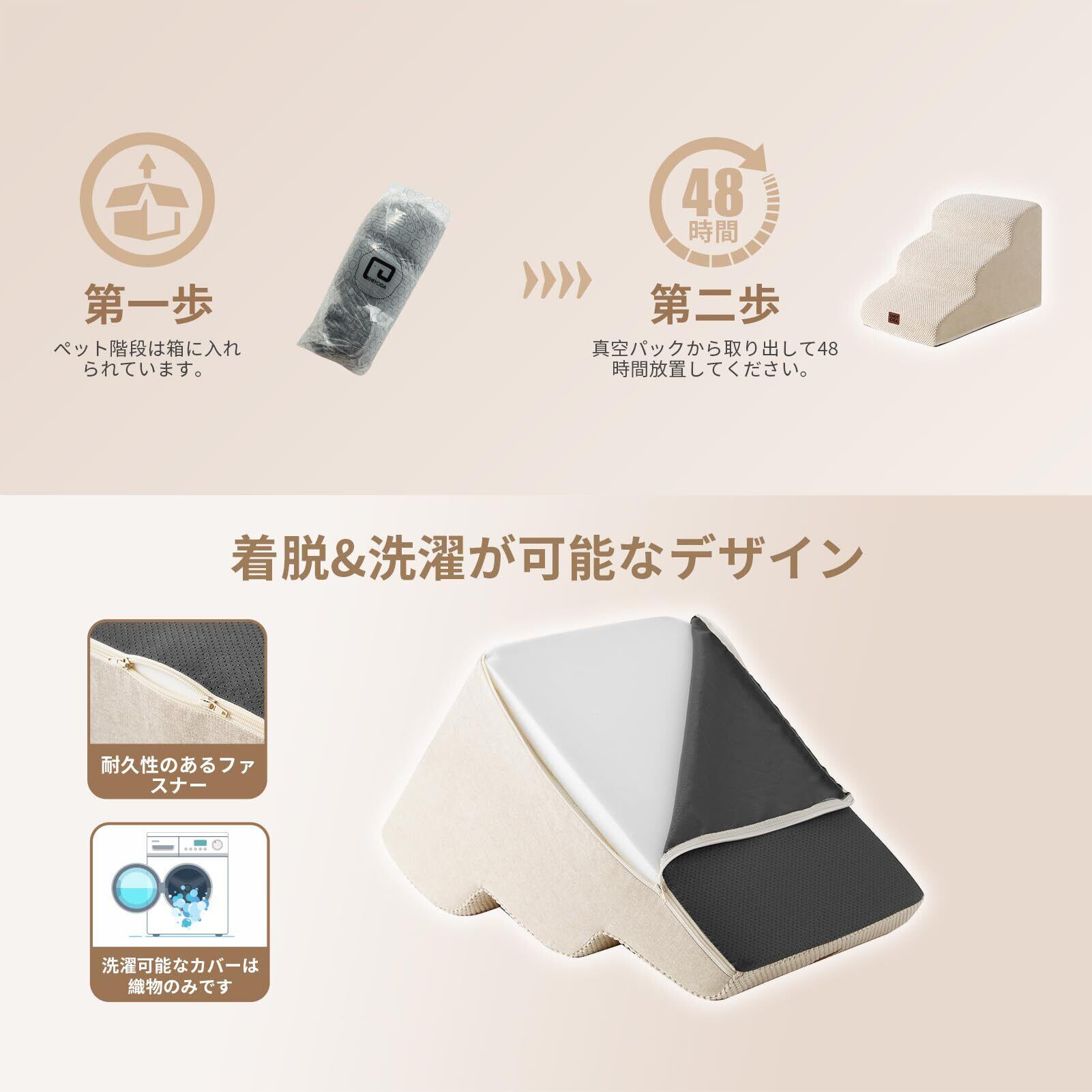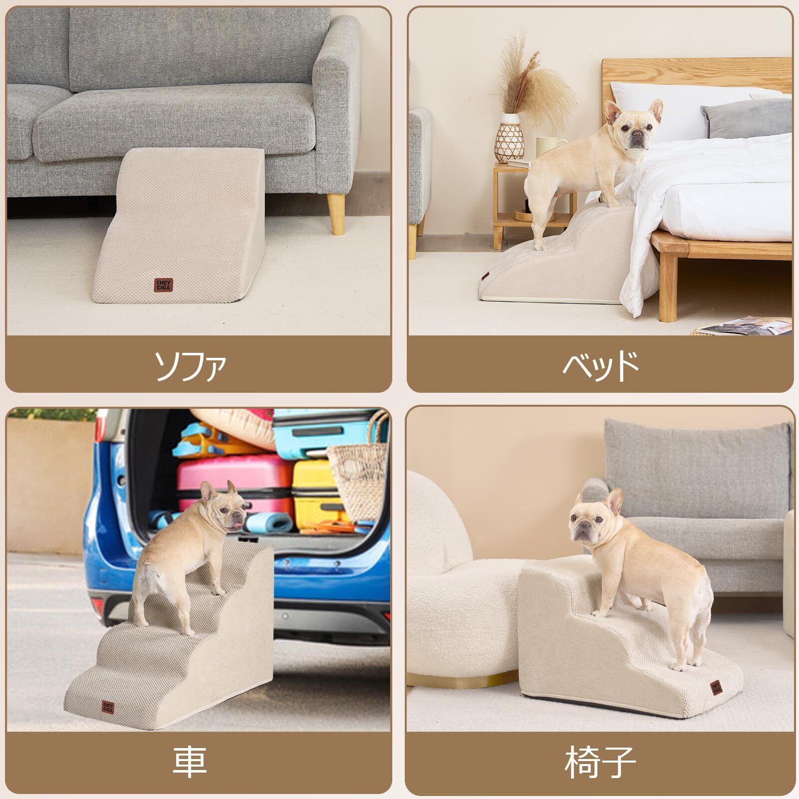 EHEYCIGA 犬階段 3段 ベージュ ドッグステップ ペット階段 滑り止め付き 洗える カバー取り外し (3段,ベージュ)