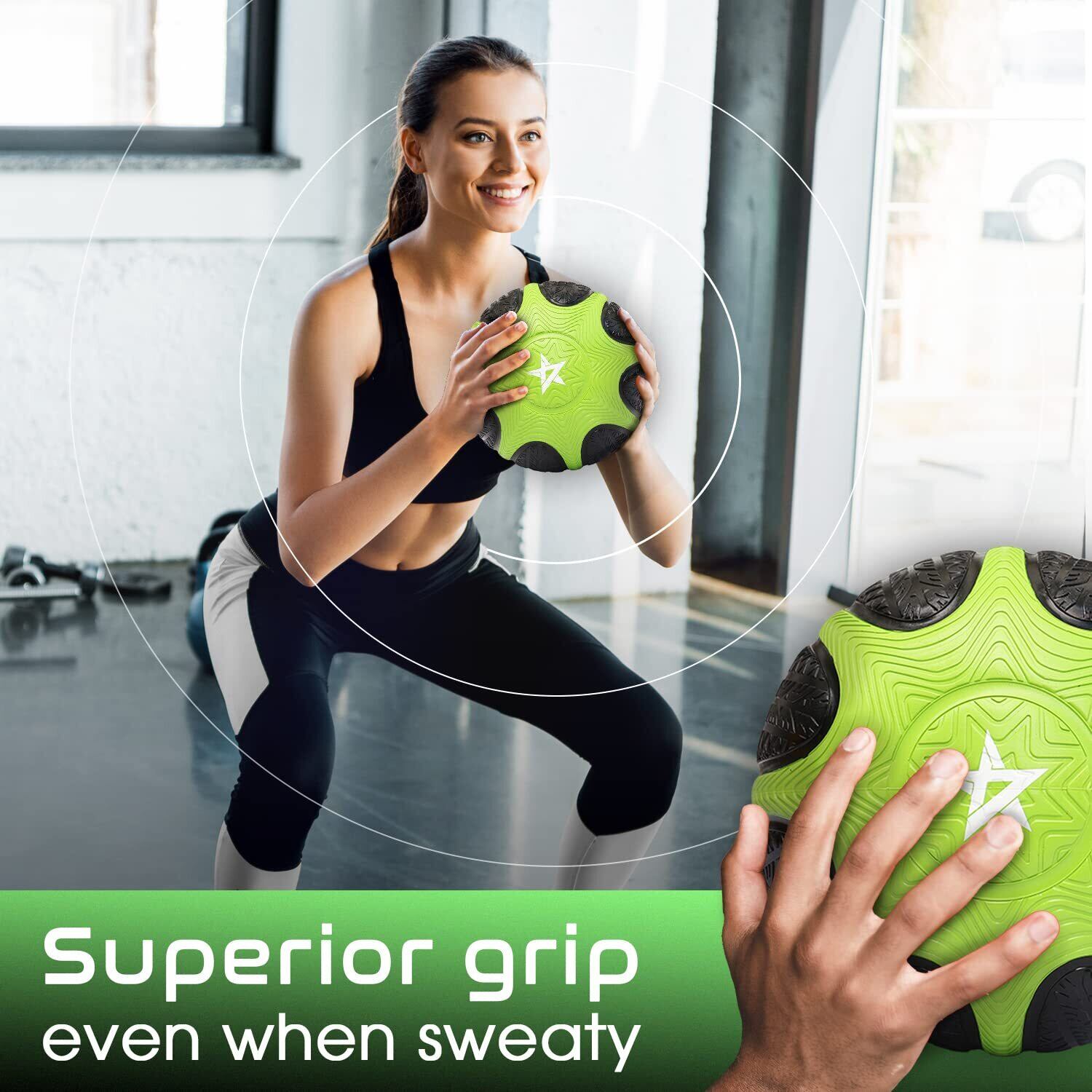 「滑り止めゴムグリップ」:ゴム製のメディシンボールは丈夫で長持ちする耐久性があります。テクスチャード加工された表面は安全で安定したグリップを提供するため、重みのあるボールを安全にハンドルできます。