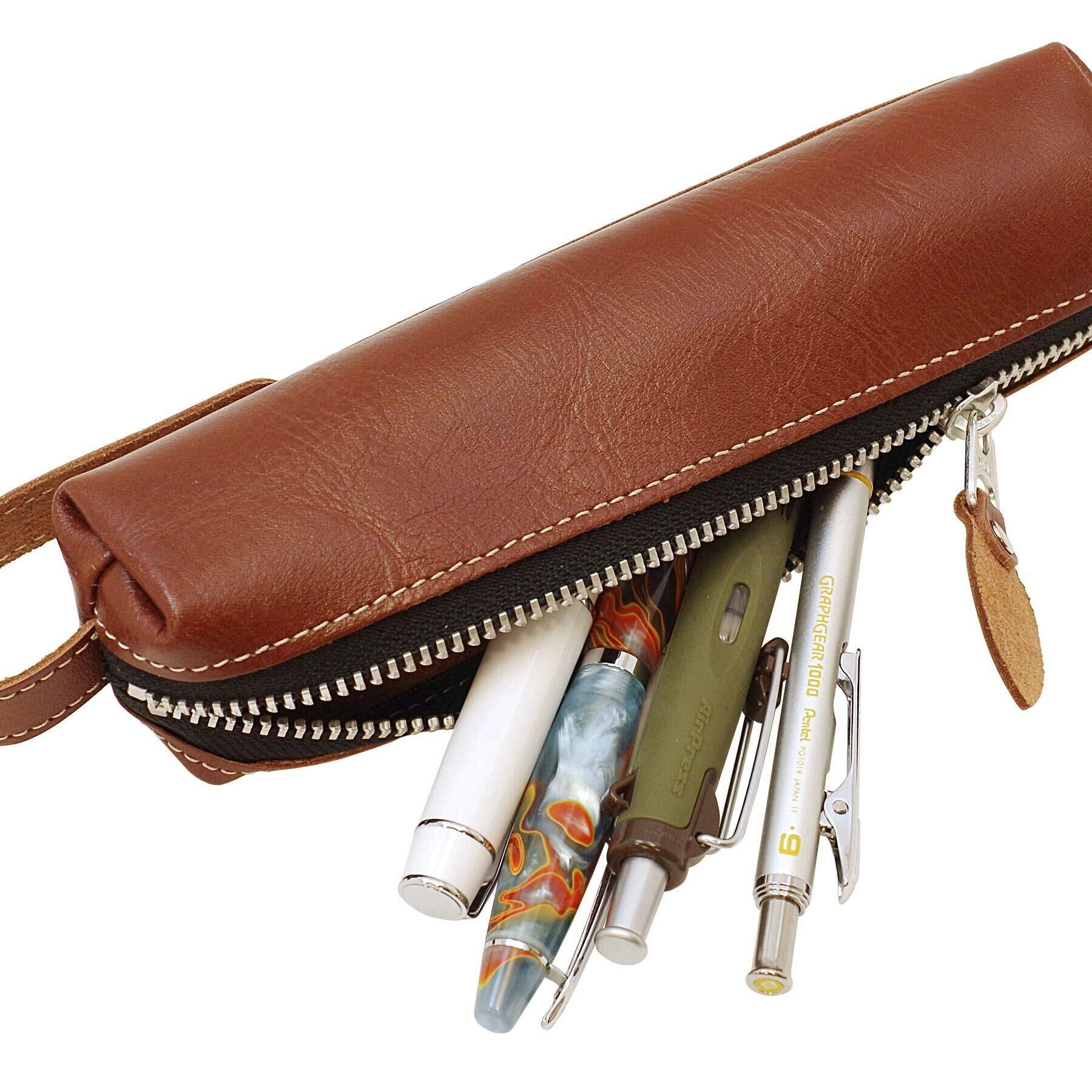 【耐久性に優れた高品質素材!】: 本革を使用したこのペンケースは、使い込むほどに味わいが増し、愛着が湧いてくる一品です。また、耐久性に優れた素材で作られているため、長期間にわたってご愛用いただけます。