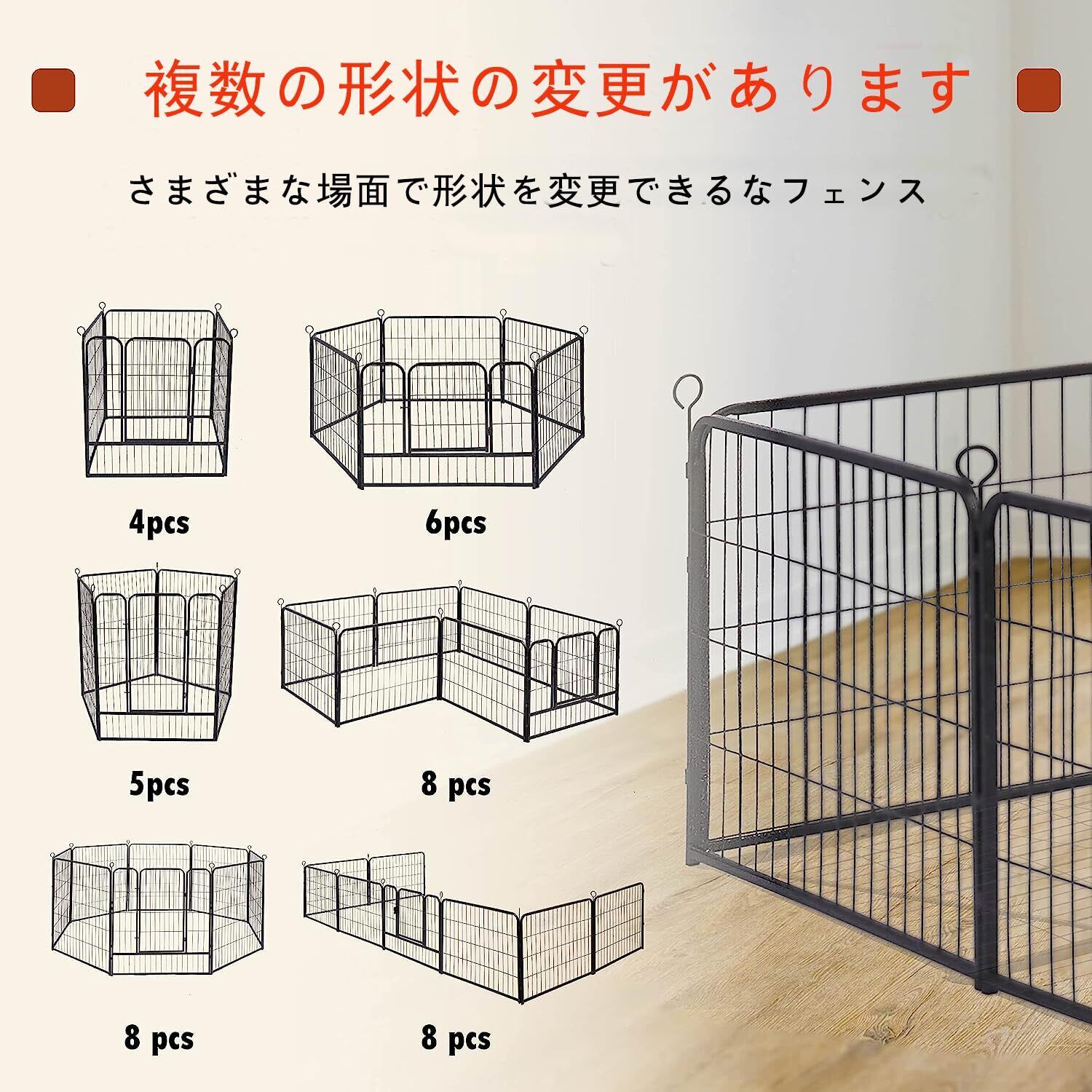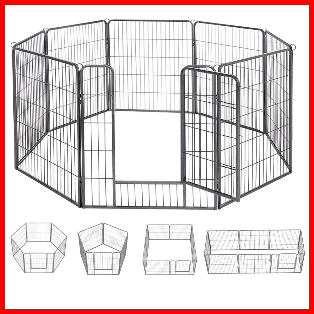 Dinah Alsop ペットフェンス 中大型犬用— ペットケージ パネル8枚 ペットサークル 四角ポール 折り畳み式 トレーニングサークル スチール製 複数の組み合わせ 室内室外兼用 犬小屋 ペット栅 (高さ80cm-8枚 シルバーブラック) | hananoki