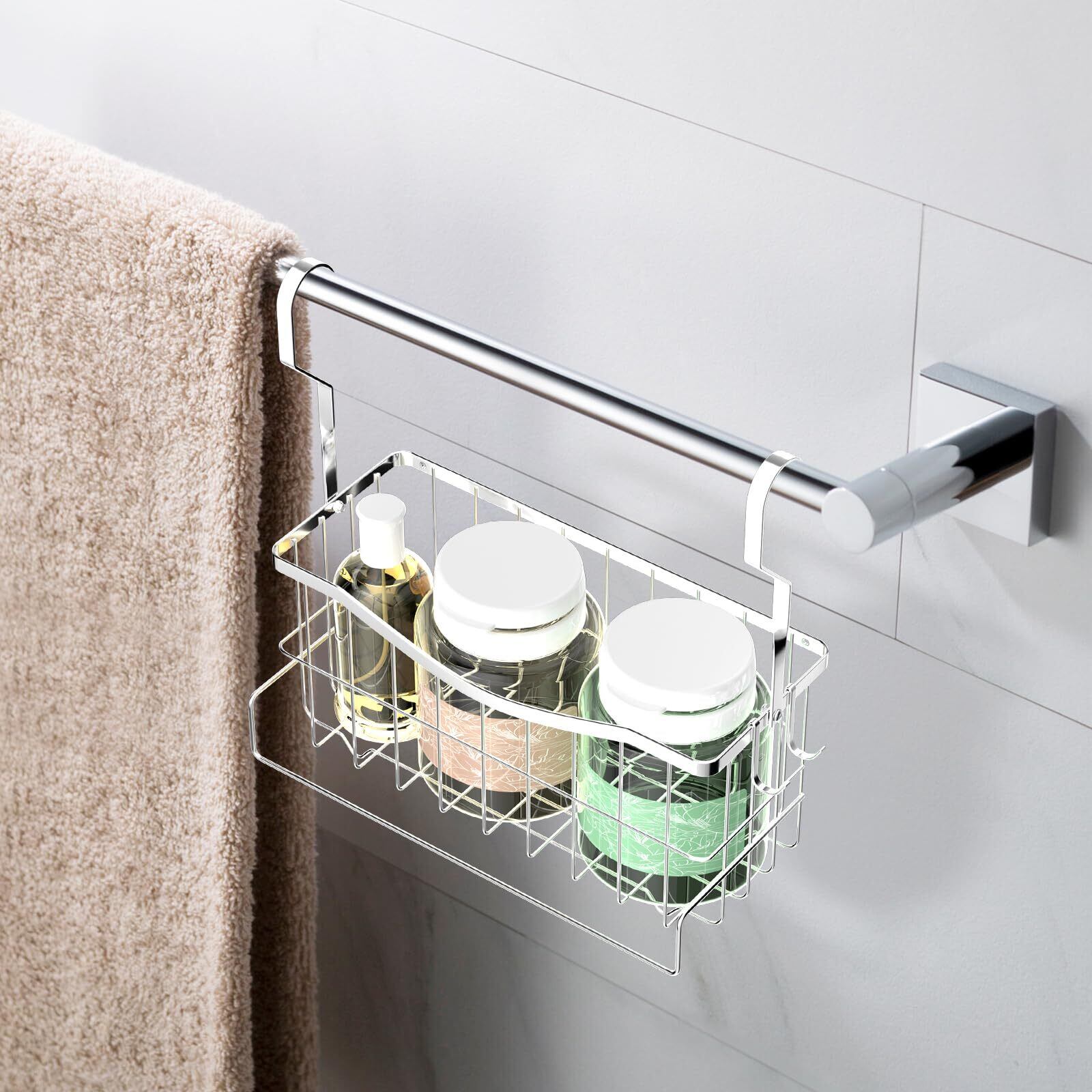 【吊り下げ式】:Lyckligの吊り下げラックは、タオルハンガーや洗濯物バーに引っ掛けて使用することはもちろん、身体ケア用品や洗顔料などをはじめ、子供のおもちゃや掃除用具などを収納するのに最適です。