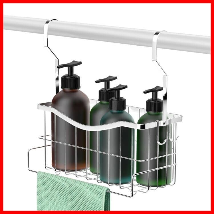 Lycklig 新登场 浴室ラック 吊り下げ式 18/8ステンレス シャンプーラック シャワーラック 組立簡単 バスラック W29XD12XH13cm 風呂 ラック タオルハンガー/小物フック付き おもちゃ収納 | hananoki