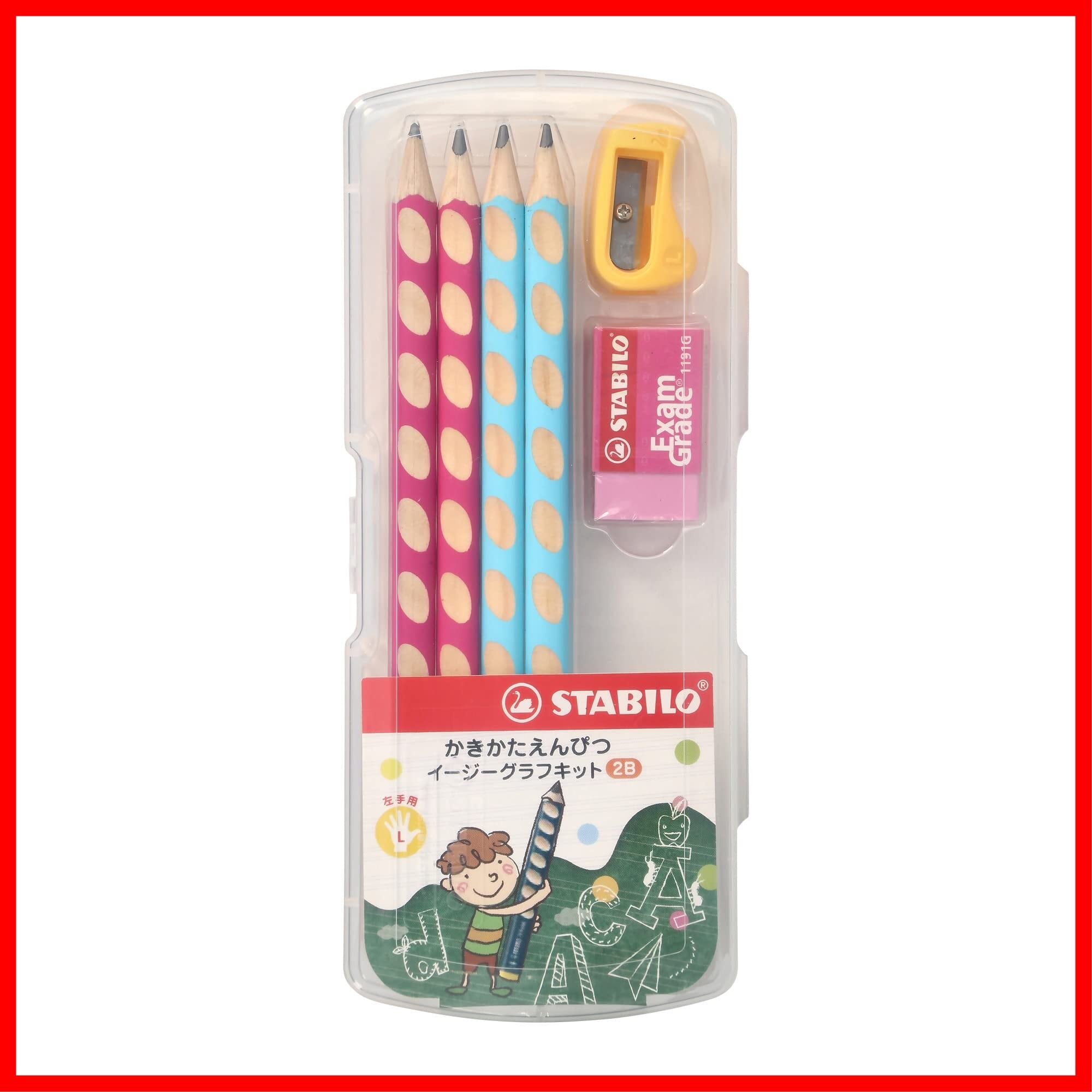 STABILO スタビロ かきかた学習鉛筆 イージーグラフ スターターセット 2B 2色各2本 左手用 三角 持ち方 矯正 名前入り 子供 幼児 男の子 女の子 4本 LP0076 ブルー・ピンク