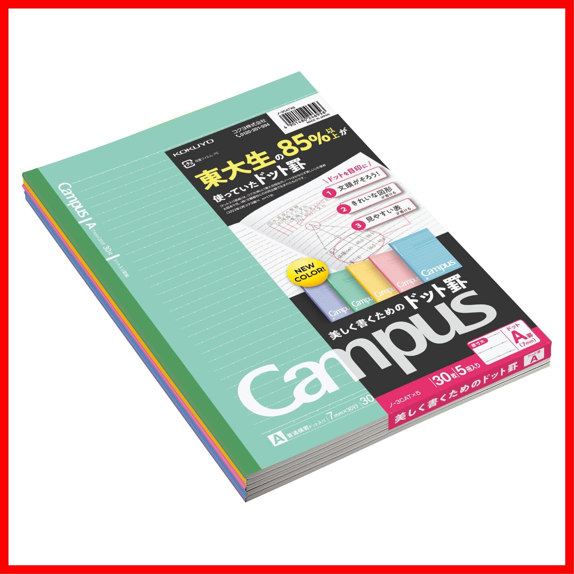 コクヨ キャンパスノート ドット入り罫線 色それぞれ5冊パック B5 A罫 30枚 ノ-3CATNX5