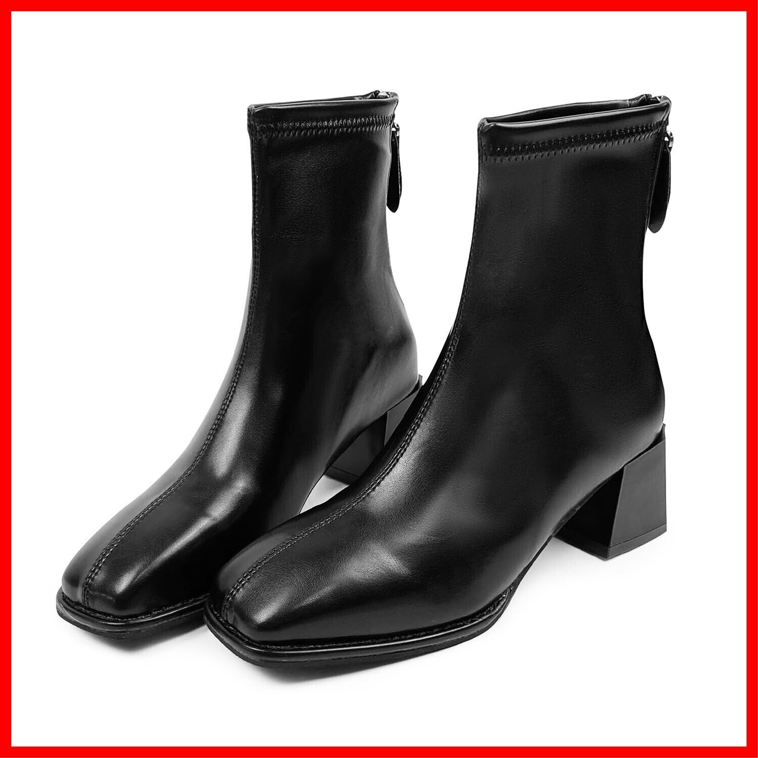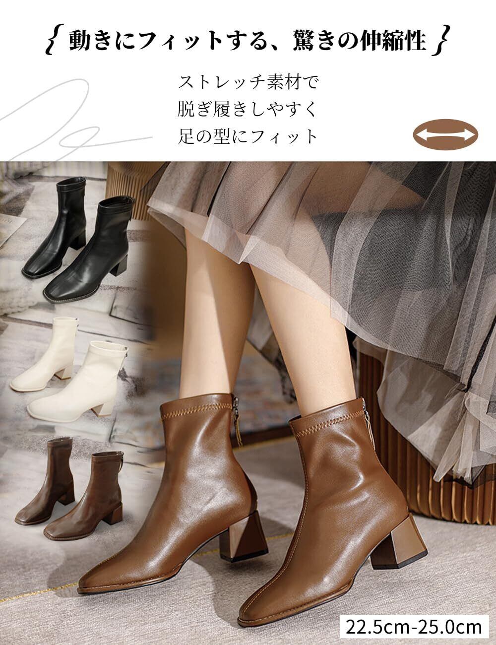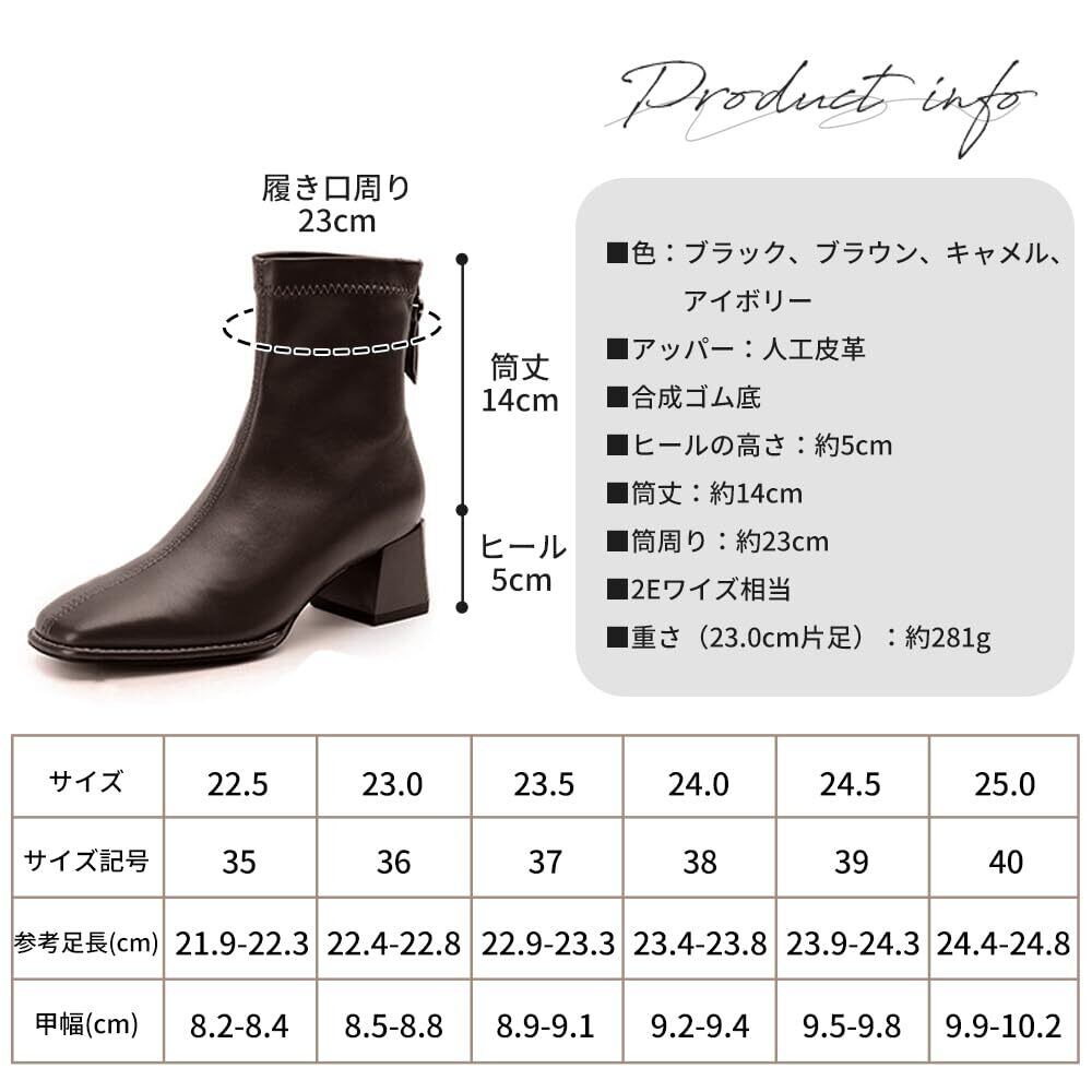 [Minax] ブーツ ショート レディース 太ヒール 歩きやすい 撥水 女性 秋 冬用 軽量 美脚 スクエアトゥ ステッチデザイン ストレッチ 柔らかい バックジップ 黒 白 茶 ブラウン 22.5cm-25.0cm