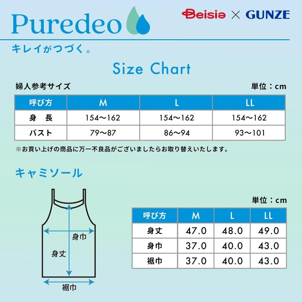 [ベイシア] GUNZE レディース インナーキャミソール タンクトップ レディースキャミソール 消臭加工 抗菌防臭加工 抗菌 防臭 Puredeo ピュアデオ