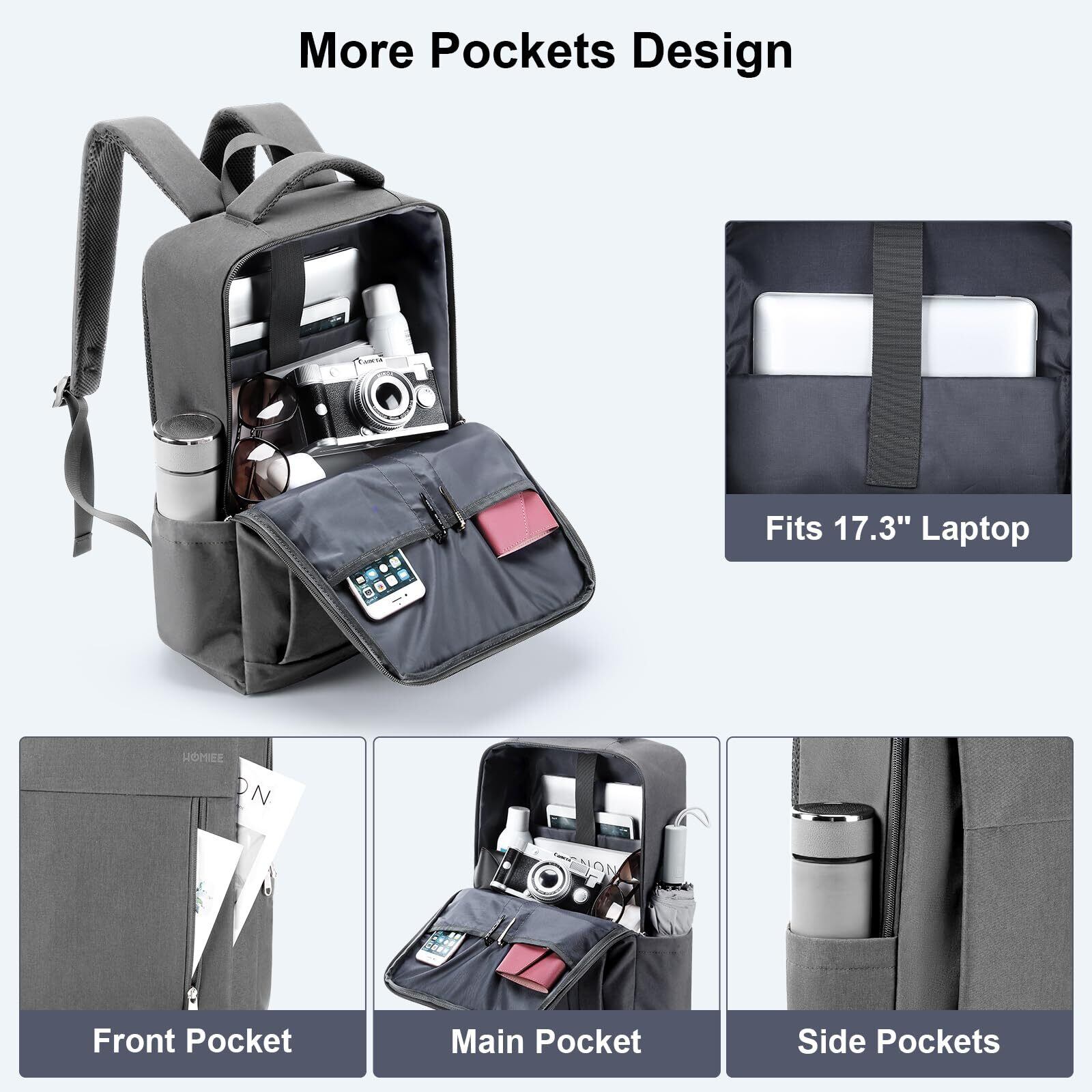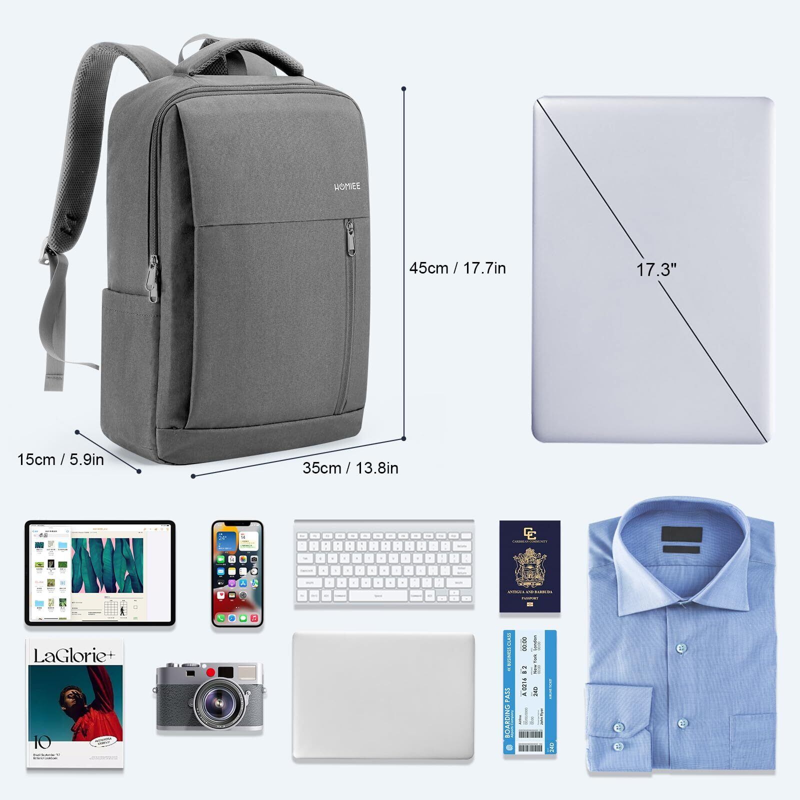 [HOMIEE] リュック ビジネスリュック メンズ 通学 通勤 軽量 バックパック 薄型 高校生 15.6インチ 17.3インチPC 大容量 A4ファイル USB充電 2WAY 多機能 防水 リュックサック 出張 旅行 カバン 男女兼用