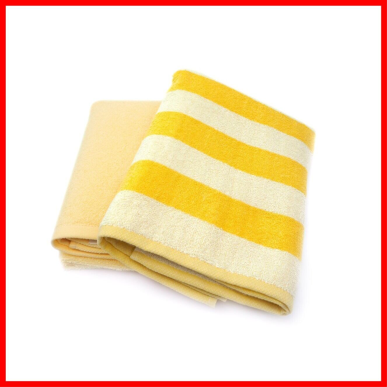 Kosugizen ミニバスタオル ボーダー&カラー イエロー 50×100㎝ 小さなサイズのバスタオル デイリーユース 2枚セット ZG-502-2YE