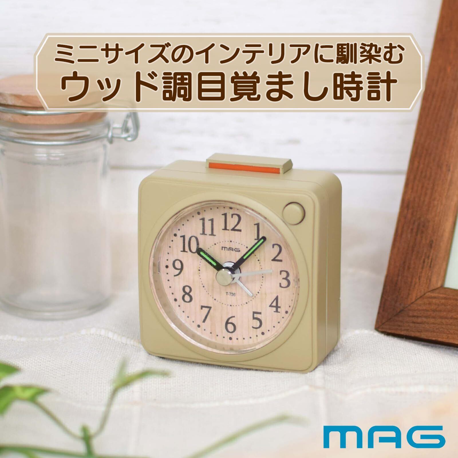 MAG(マグ) 目覚まし時計 置き時計 小型 小さい アナログ かわいい おしゃれ インテリア 静音 連続秒針 電子音 アラーム スヌーズ ライト ナチュラル ミニモク T-736 N-Z ノア精密