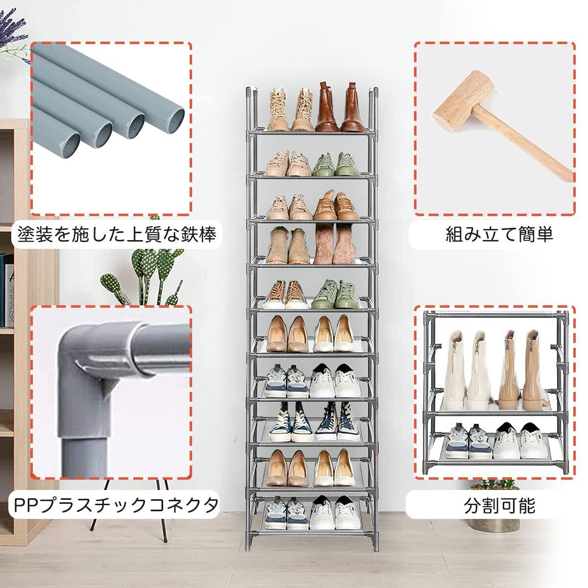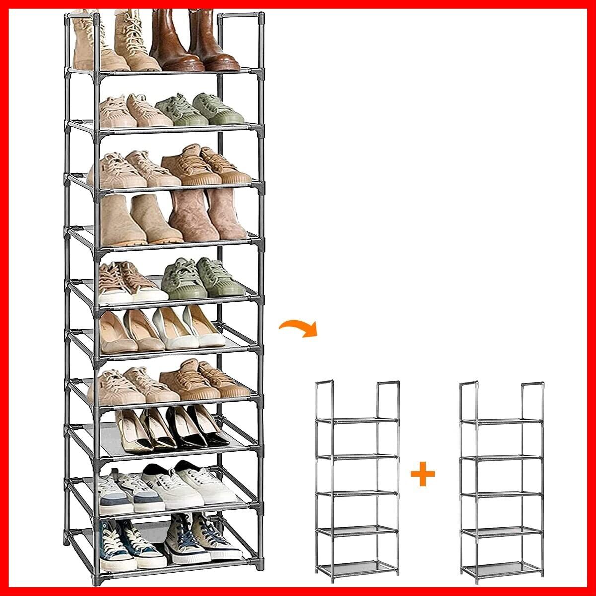 シューズラック 10段 靴収納 18-20足 靴棚 下駄箱 省スペース シューズボックス スリム 玄関に靴を効率収納 靴入れ 組み立て式 幅約45×奥行28×高さ176cm (グレー 10段)