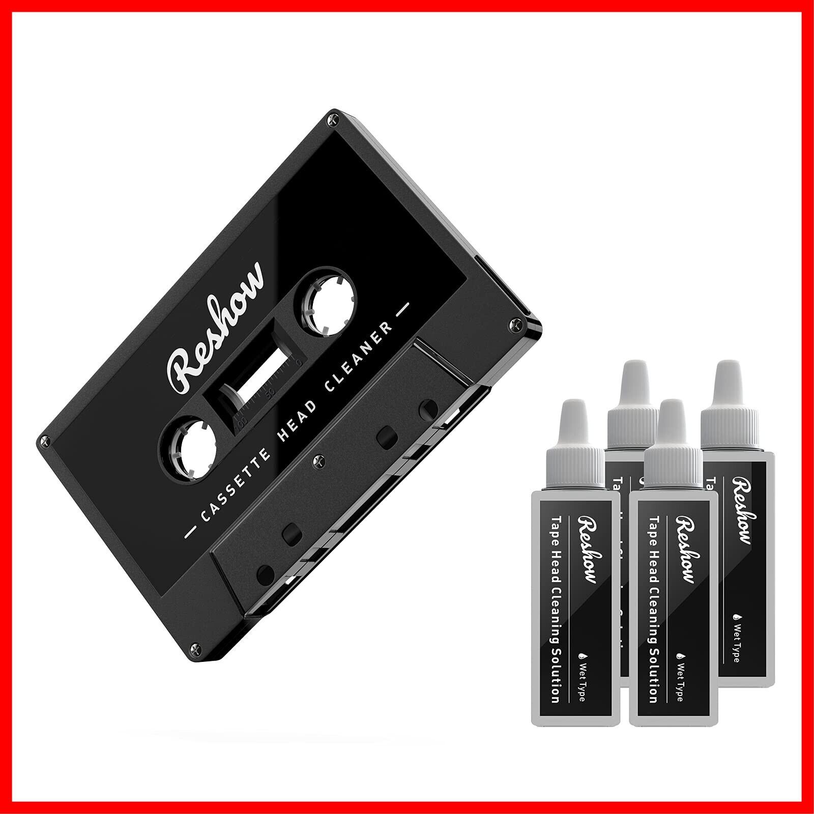 Reshow カセットテープ クリーナー2種の液体を含む湿式ケアセット、ボックス型レコーダー/スピーカー/ディスク/レコーダー/テープに適用可能