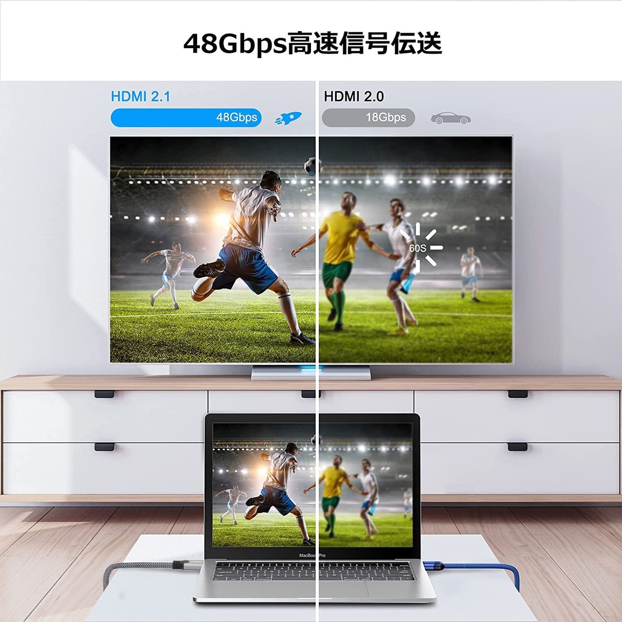 【高速の48Gbpsでストレスフリー!】 : 高速伝送を実現する48Gbpsの帯域幅を持つこのケーブルは、データ転送の遅延を最小限に抑えます。大画面テレビやゲーミングモニターとの接続でも、ストレスを感じることなく滑らかな映像体験を提供します。