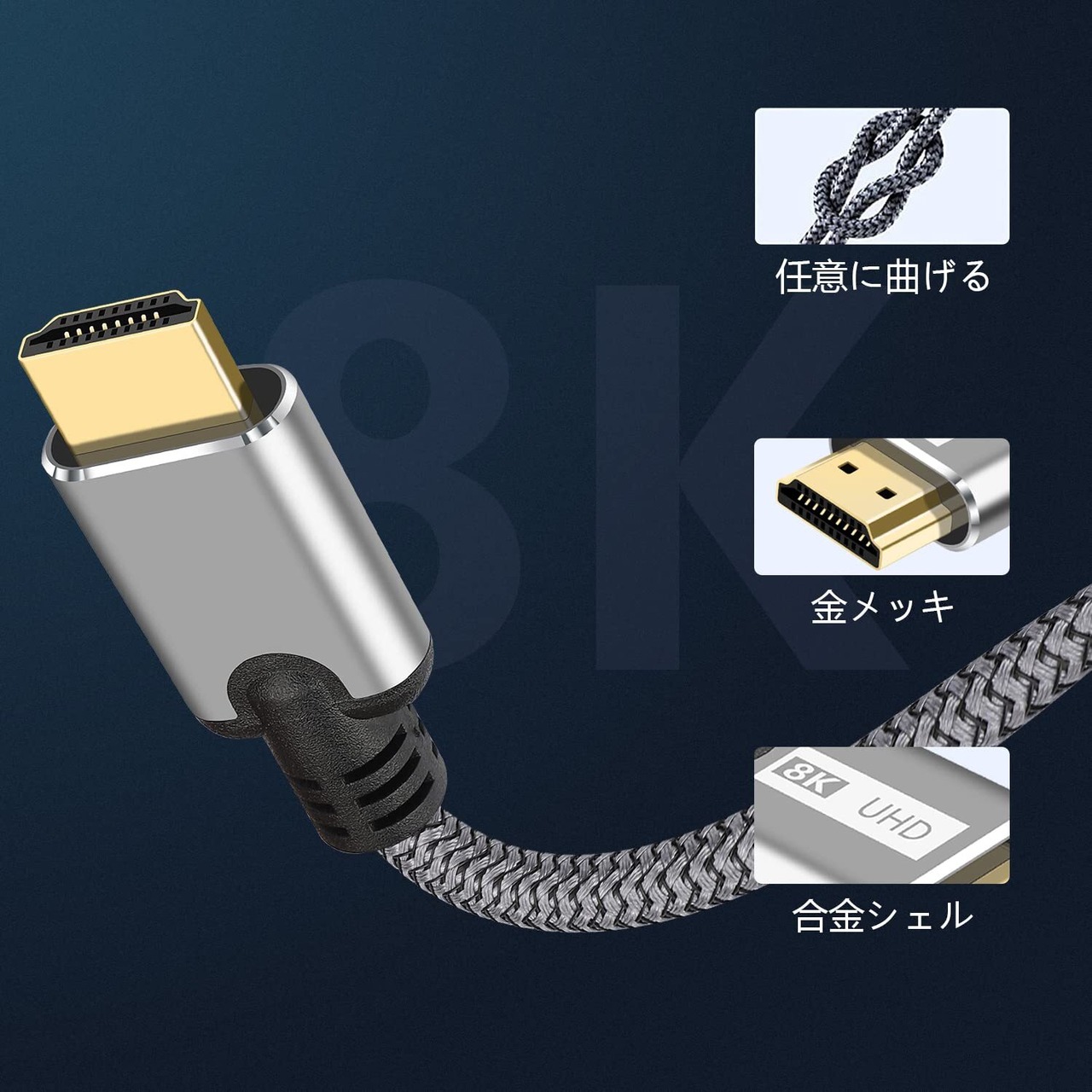 ● 特徴:8K/4K対応、48Gbps高速伝送、ナイロン編みの高耐久性、幅広いデバイス対応