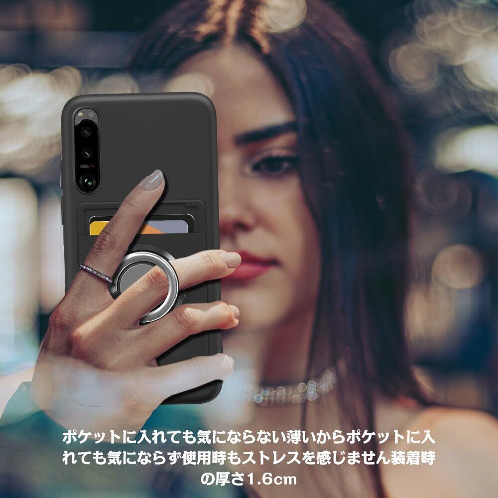 対応 xperia 5 iii ケース SO-53B | SOG05 | XQ-BQ42 リング付き シリコン 背面 カード収納 エクスペリア 5 iii スマホケース スタンド機能 360°回転リング 耐衝撃 耐久 滑り止め 黑