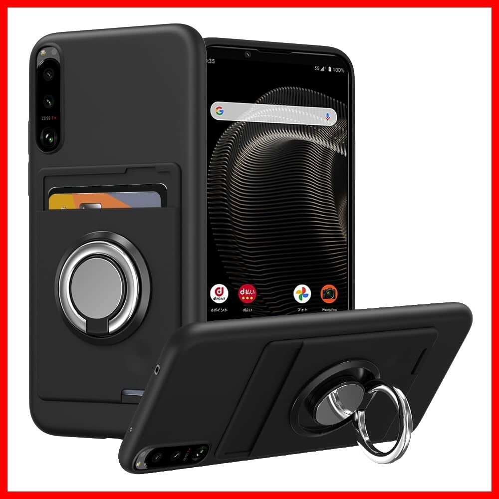対応 xperia 5 iii ケース SO-53B | SOG05 | XQ-BQ42 リング付き シリコン 背面 カード収納 エクスペリア 5 iii スマホケース スタンド機能 360°回転リング 耐衝撃 耐久 滑り止め 黑 | hananoki