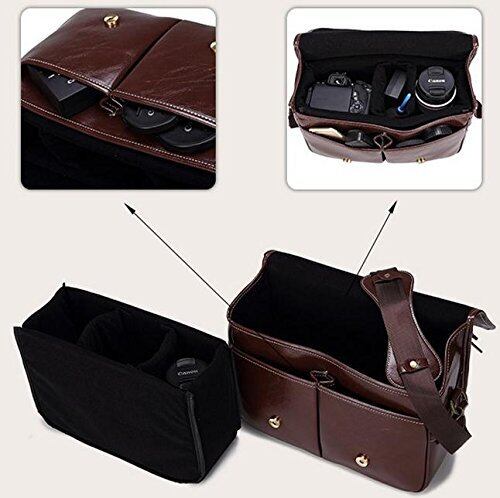 Giyomi 英国風 一眼レフ カメラバッグ/ショルダーバッグ ケース (防水加工) レトロ 本革調 仕立て (ダークブラウン)