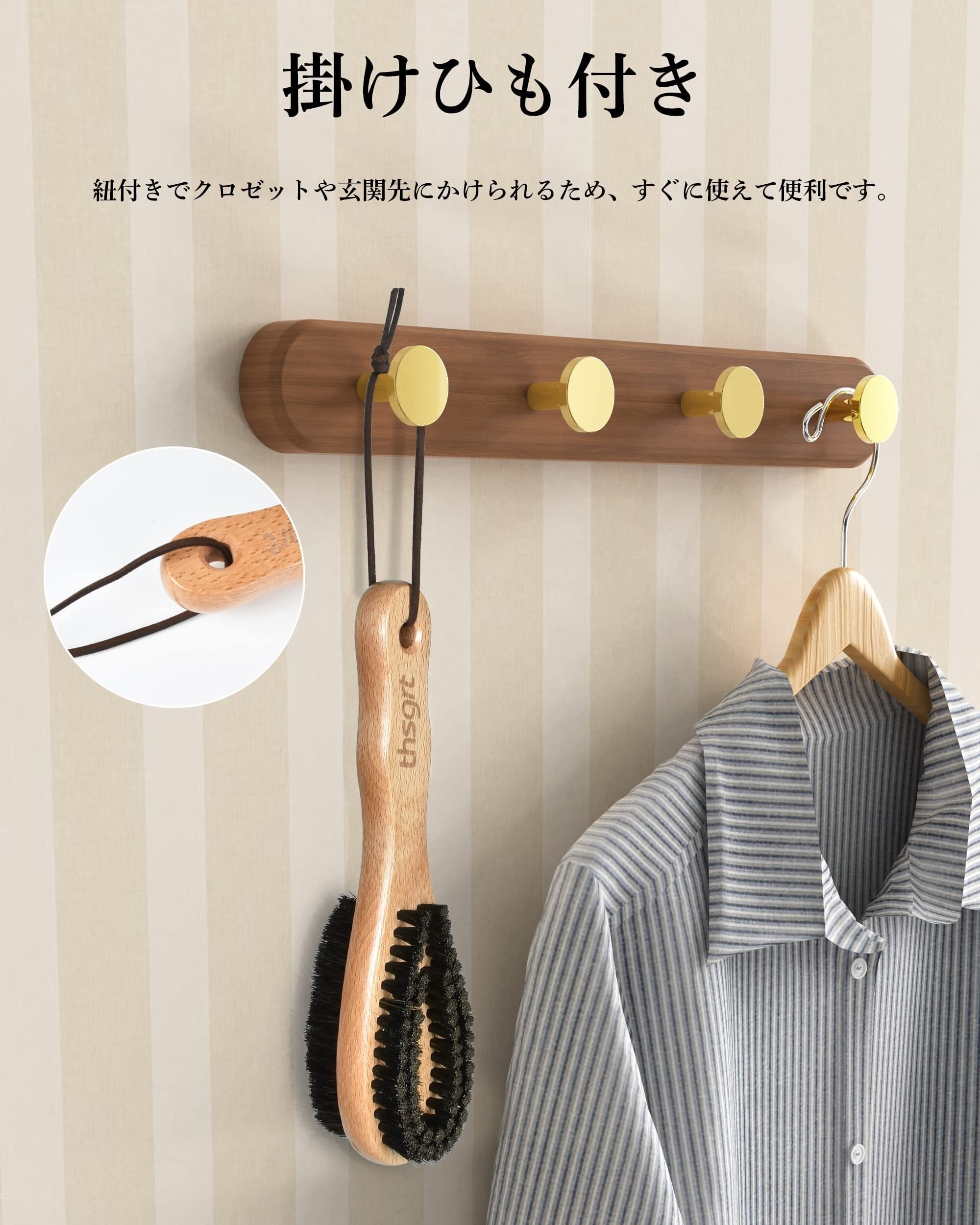洋服ブラシ,thsgrt【天然馬毛豚毛100%】 毛玉取り 靴磨き 天然木 花粉対策 毛玉予防 スーツブラシ プロ馬毛ブラシ 静電/ホコリ/花粉 除去
