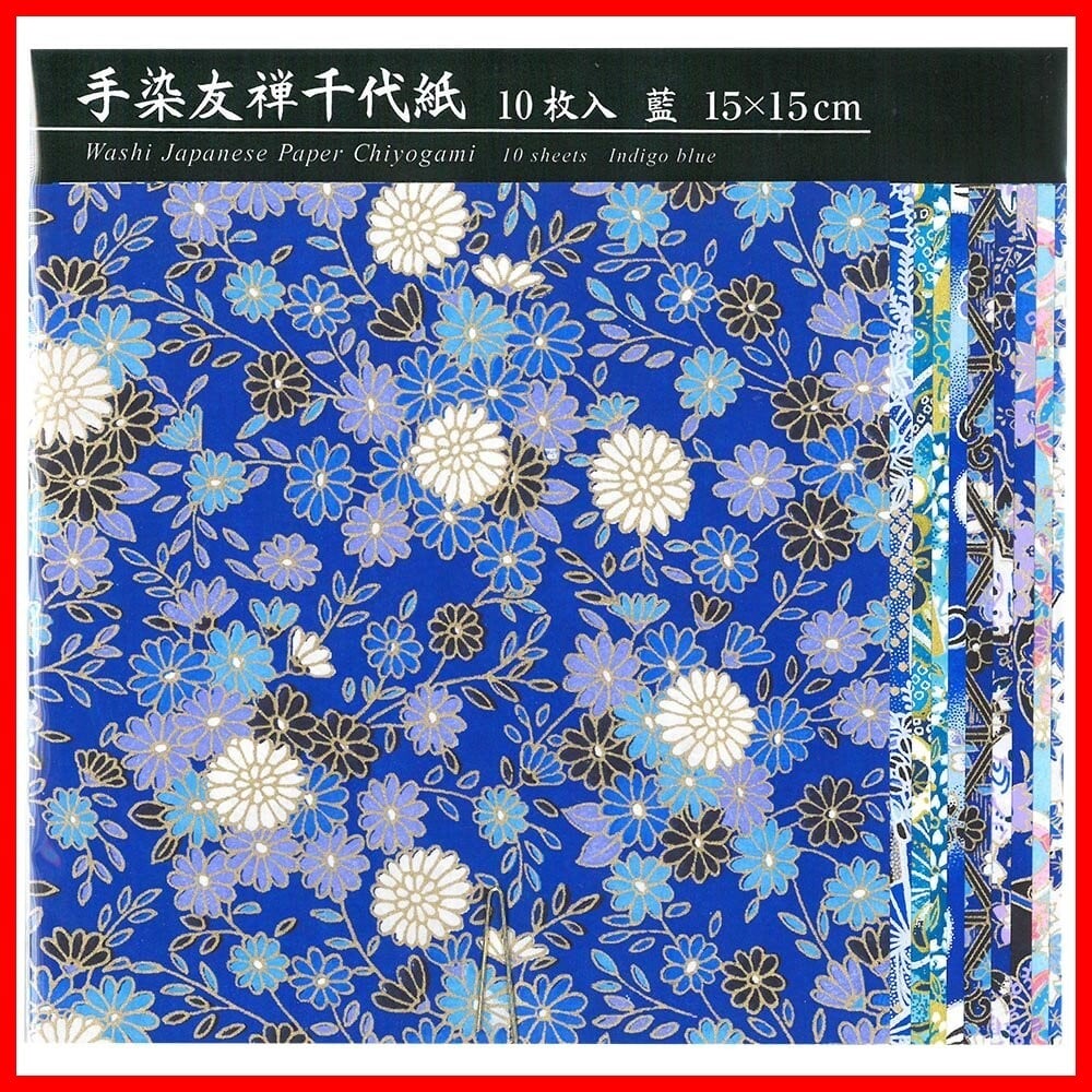 エヒメ紙工 和紙 手染友禅千代紙 藍 15cm角 10枚 TZM-5015A
