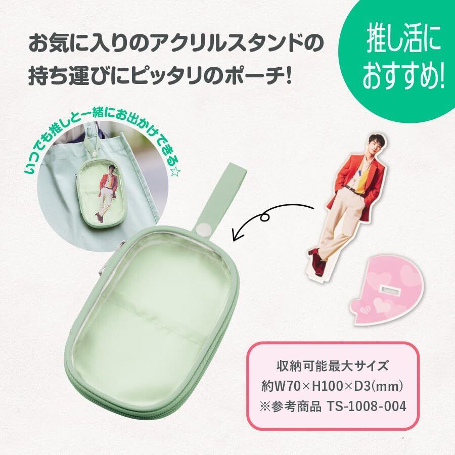 推し活におすすめ! 推し活の定番アイテム、アクリルスタンドを入れて持ち運べるポーチです。 前面はクリア仕様になっており、お気に入りのアクリルスタンドや缶バッチを入れれば、 中に入れたグッズを見せて楽しむことができます。 ポーチには推しグッズはもちろん、お好きなものを入れて見せる収納として使うのもおすすめです。 ポケット付きなので小物入れとしても便利に活用でき、 また本体と同色のストラップ付きなので、バッグなどに取り付けていつでも持ち歩くことができます。 豊富な8カラー展開です!