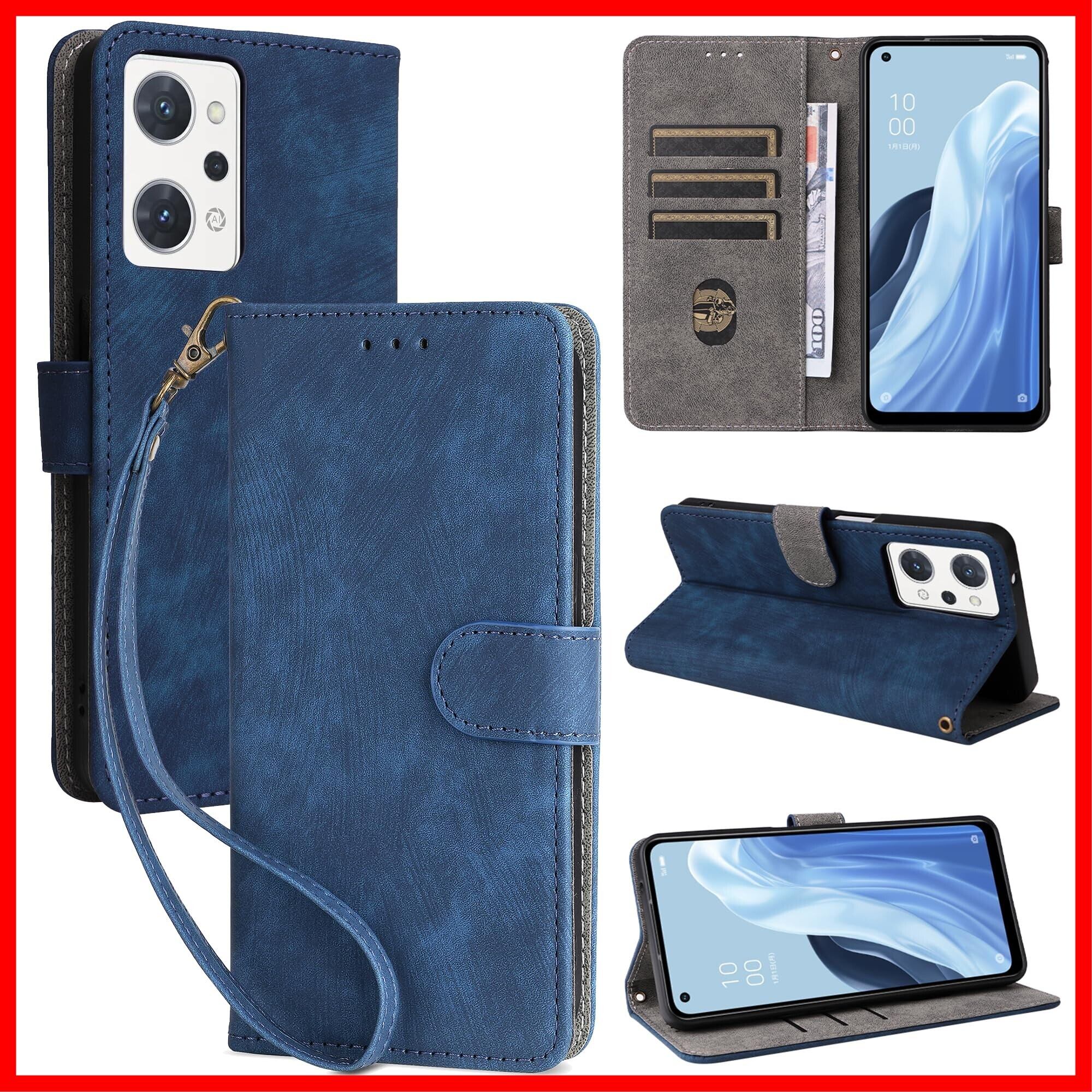 For OPPO Reno9 A/For OPPO Reno 7A ケース 手帳型 カバー 財布型 高級PUレザー カード収納スタント機能/耐衝撃/耐摩擦/全面保護/薄型/マグネット開閉 防水 ノート型 人気 おしゃれ 男女兼用 Reno9 A ブルー