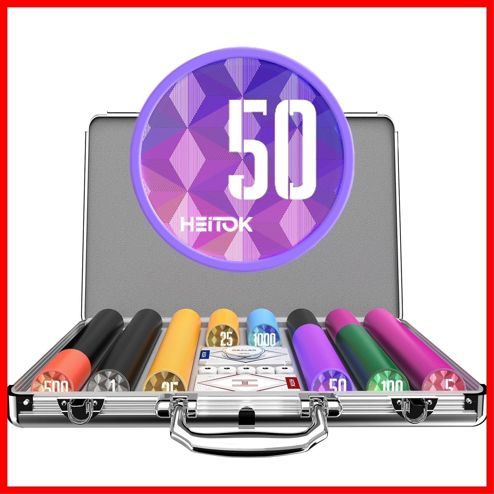 HEITOK ポーカーチップ ポーカーセット 500枚 数字入り 11.5g カジノチップ トランプ2組とサイコロ5個が付属 ABS製チップ アルミ製スーツケース入り