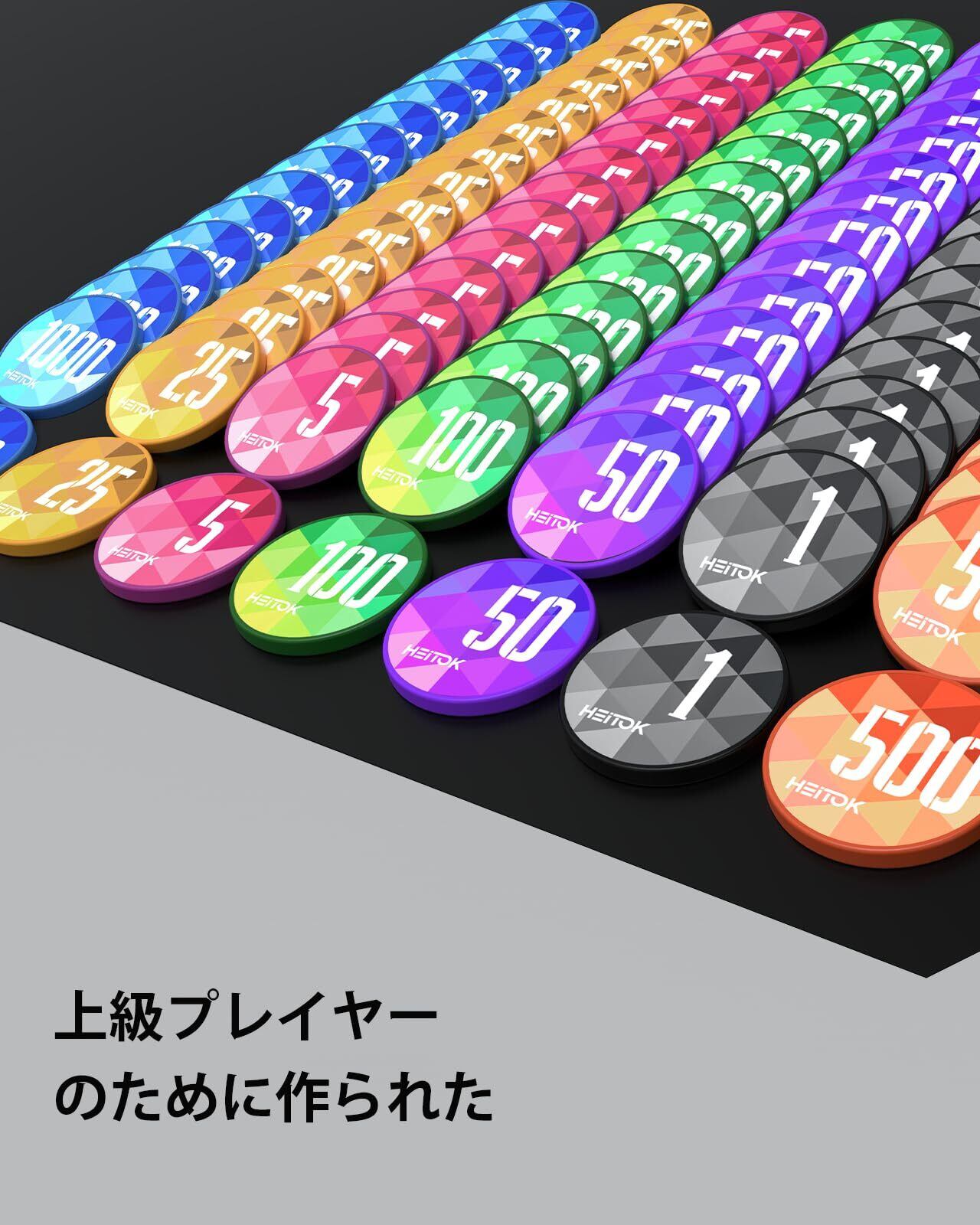 【本格的なカジノ体験を自宅で!】 : 「HEITOK ポーカーチップ ポーカーセット」は、自宅で気軽にポーカーを楽しむための理想的なセットです。500枚の数字入りポーカーチップは、11.5gの重さで本格的な感触を実現。友人や家族との楽しい時間を思い出深いものにするための必需品です!