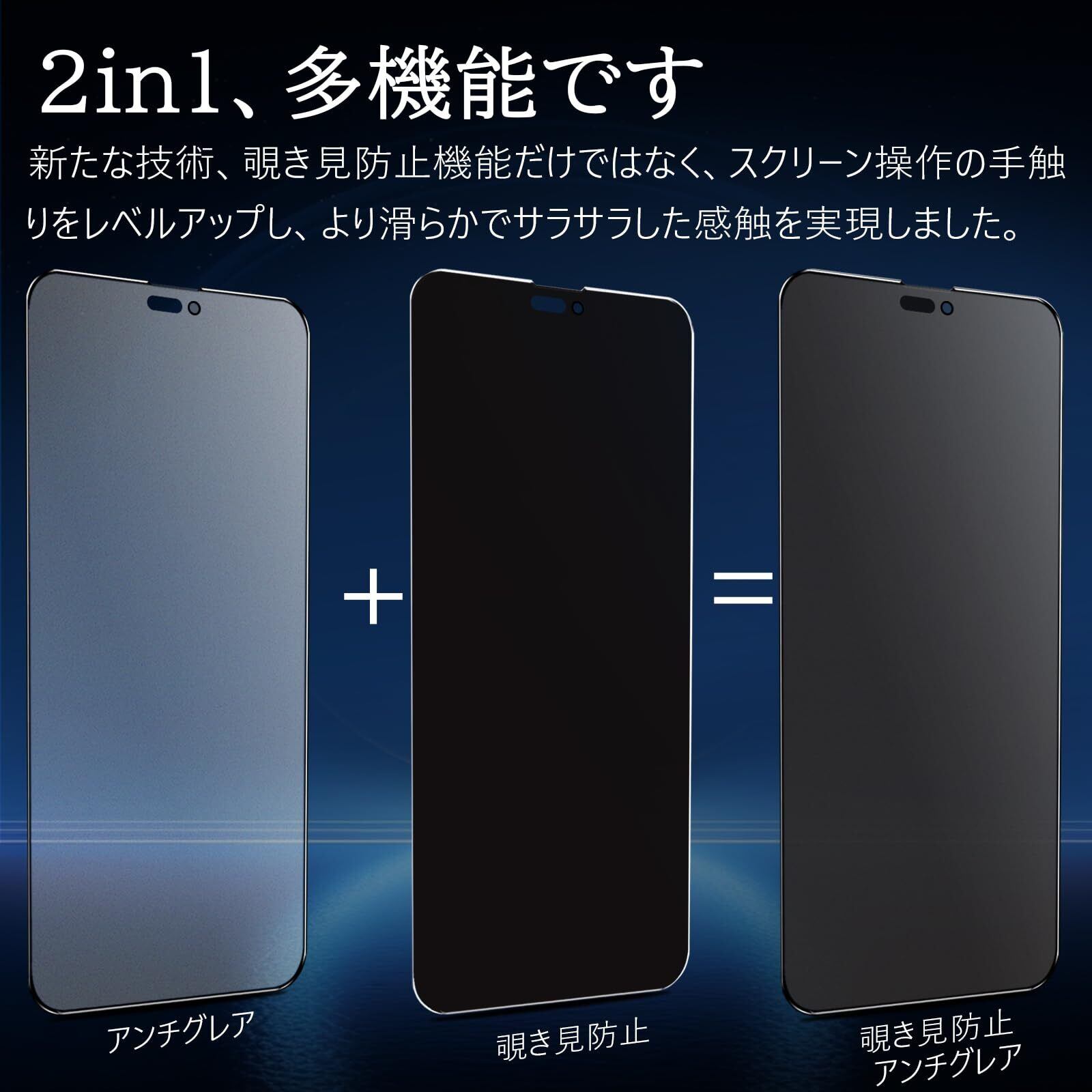 【2in1・多機能】 新技術を採用した2in1保護フィルムは、アンチグレア機能と覗き見防止機能を兼ね備えています。画面操作時の指触りをさらに改良し、より滑らかでサラサラとした使い心地を実現しました。