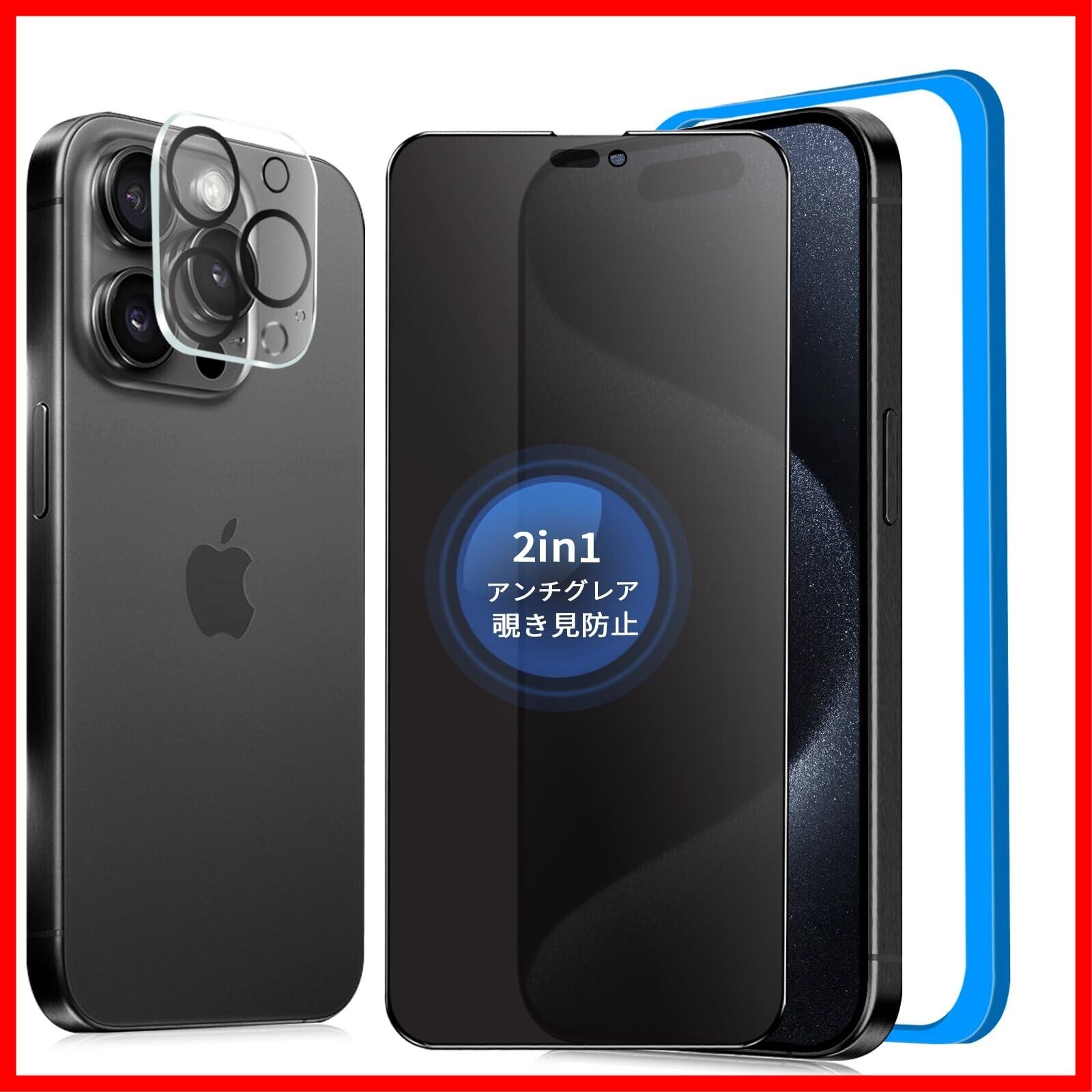【覗き見防止+アンチグレア】 iPhone15 Pro ガラスフィルム 覗き見防止 さらさら【1枚】いPhone15Pro フィルム のぞき見防止 サラサラ アイフォン15プロ 保護フィルム のぞき見防止 アンチグレア iPhone15pro プライバシー 反射防止 ゲーム用 [ガイド枠付き/iPhone 15pro カメラフィルム付き]