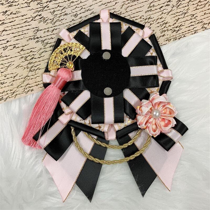 ジートリガー(G triger) 和風痛ロゼット 飾りロゼット 缶バッチロゼット 多種類 パーツ チェーン リボン 痛バッグ飾り 推し ハンドメイド DIY ロゼット飾り キャラクター ピンク | hananoki