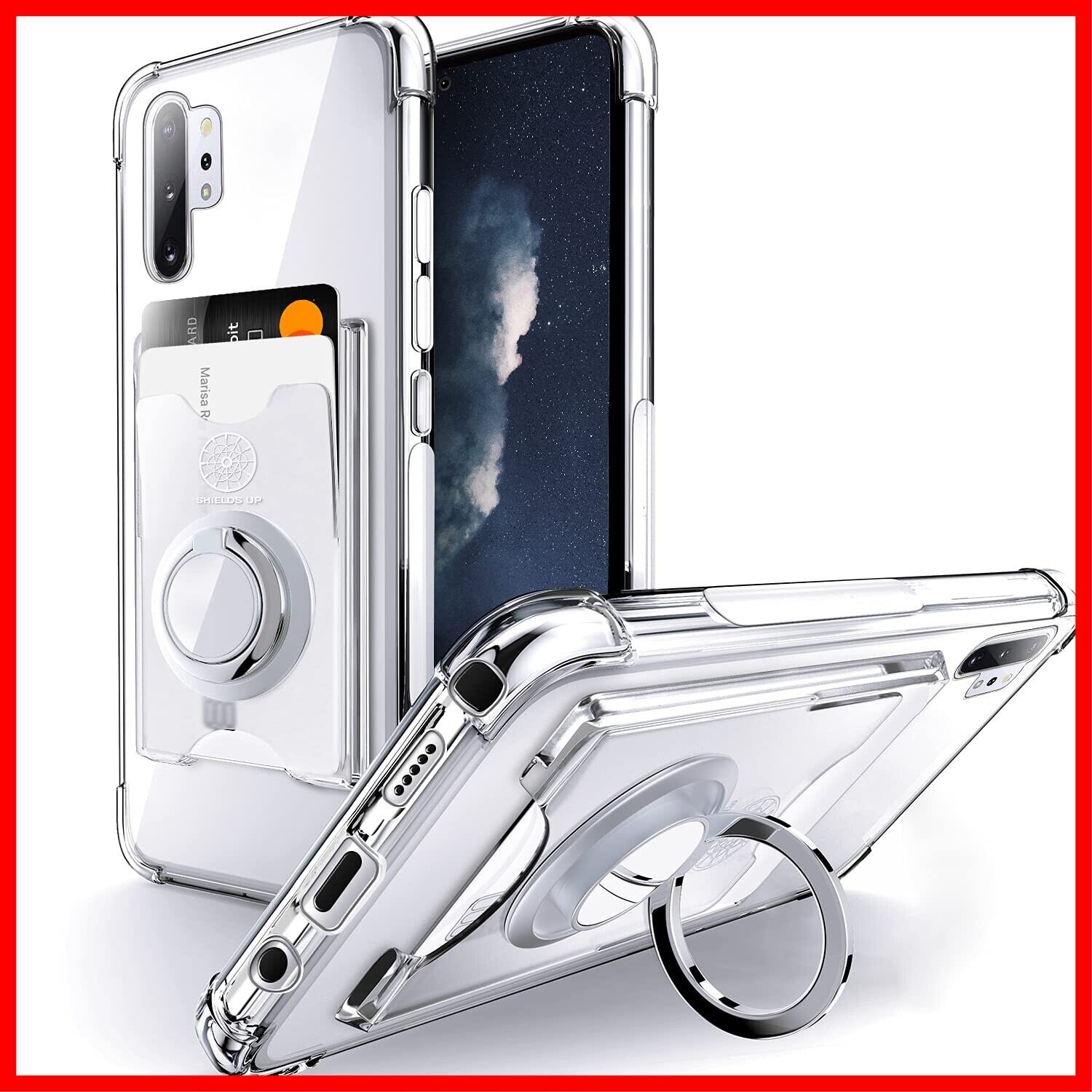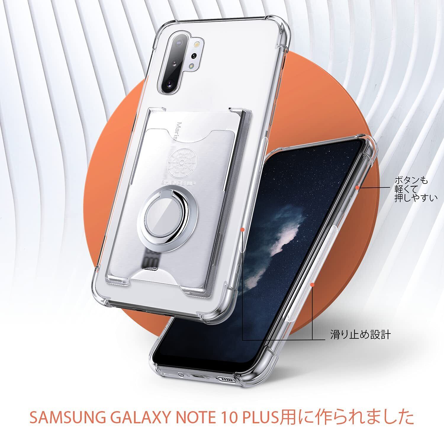 SHIELDS UP Galaxy Note 10 Plus 用 ケース SC-01M SCV45 ケース カード収納 背面ポケット リング付き スタンド機能 耐衝撃 透明 TPU カバー ギャラクシーノート10プラス スマホケース - クリア
