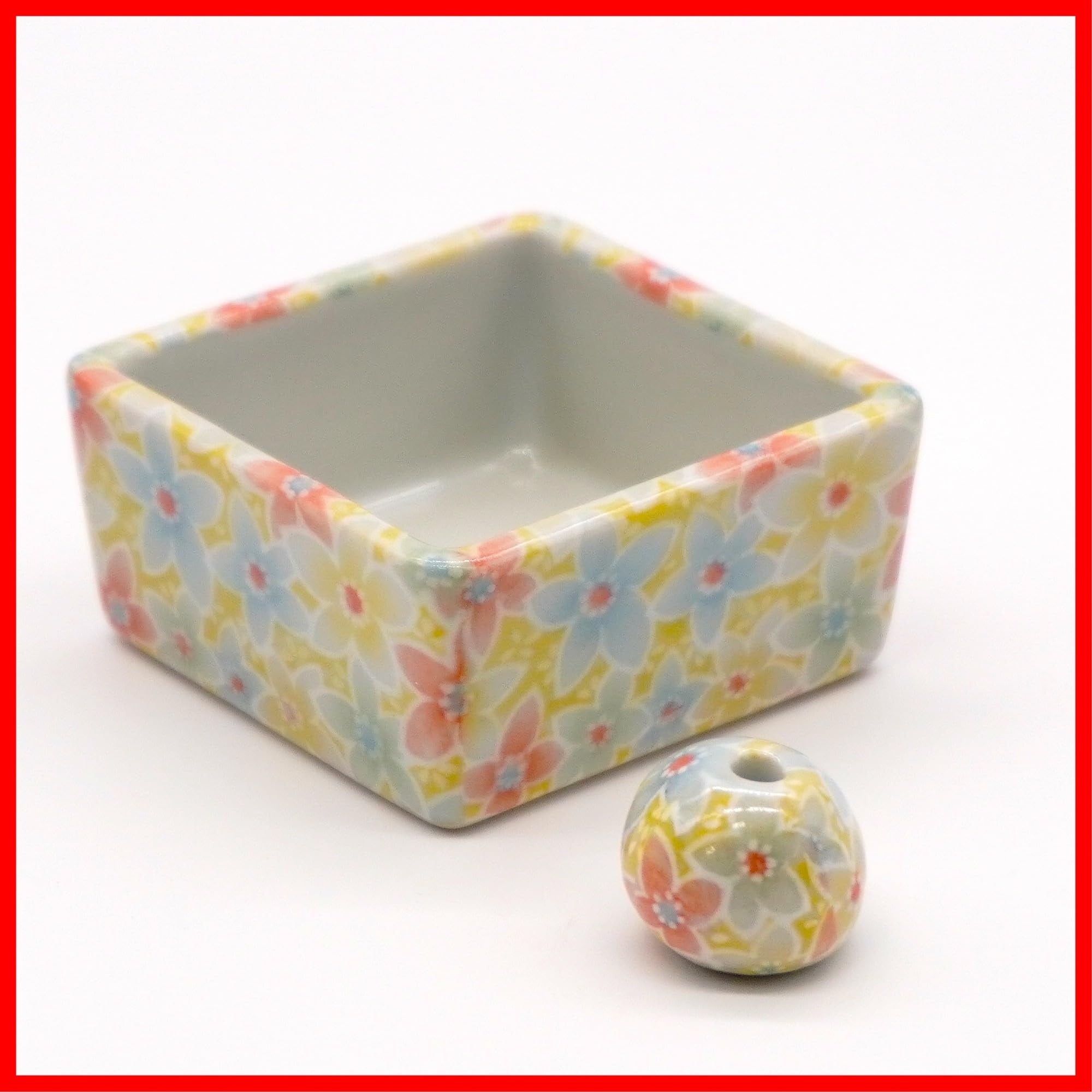 ● 商品名:角型香炉 線香立て 都忘れ柄 美濃焼 国産品 陶器