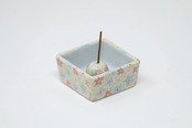 角型香炉 線香立て 都忘れ柄 美濃焼 国産品 陶器