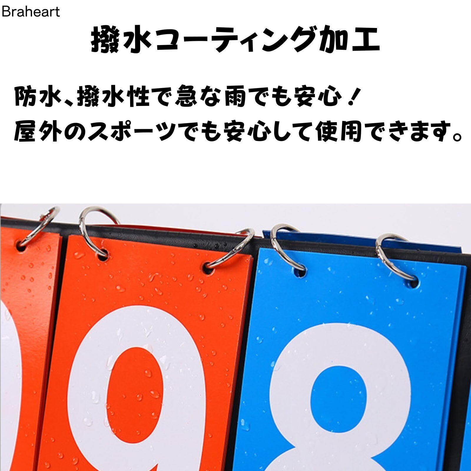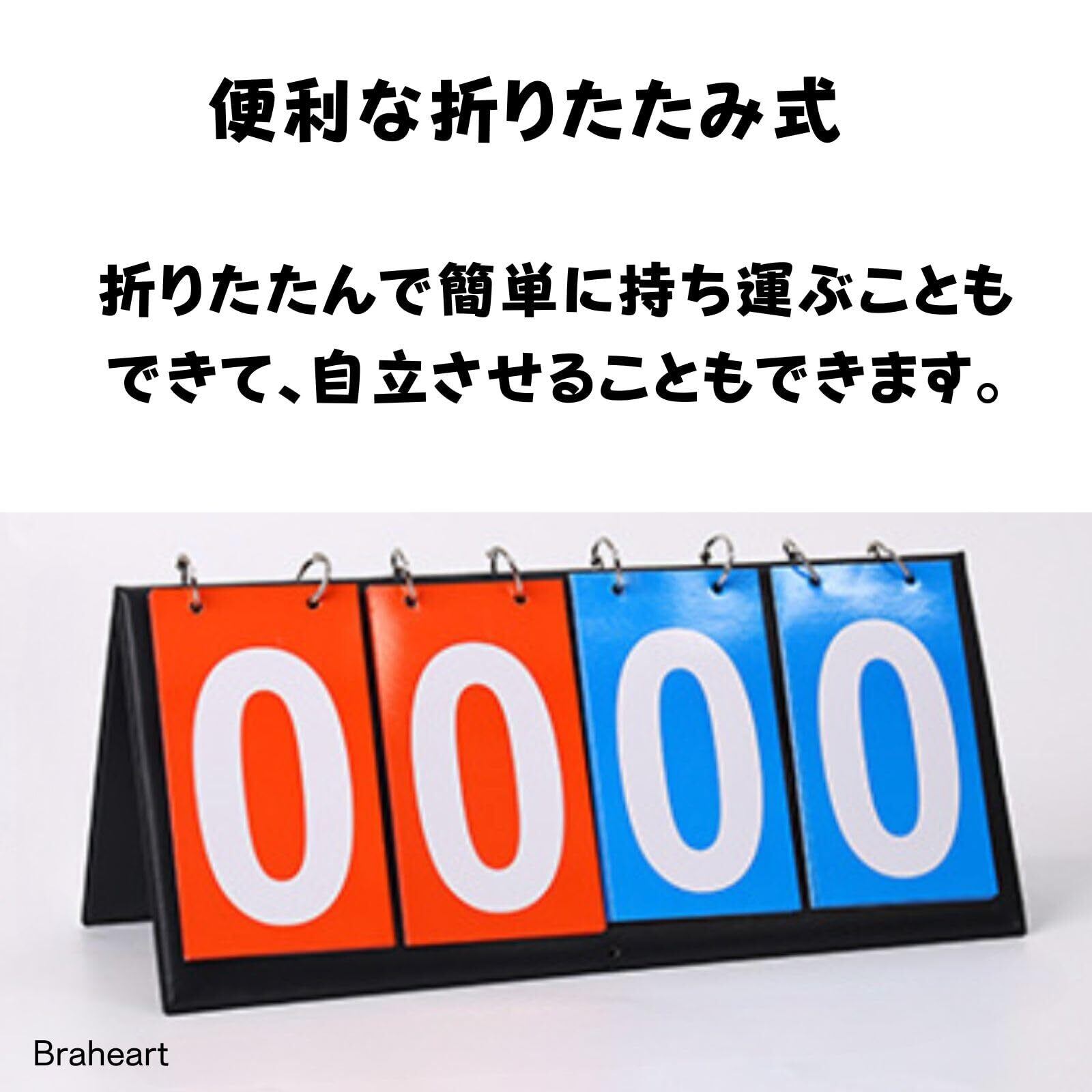 Braheart 4桁 スコアボード 得点板 得点ボード 折り畳み可 防水加工 携帯便利 読みやすい スコア表 各種スポーツに適応 競技 野球 サッカー バスケットボール 卓球 スポーツ用
