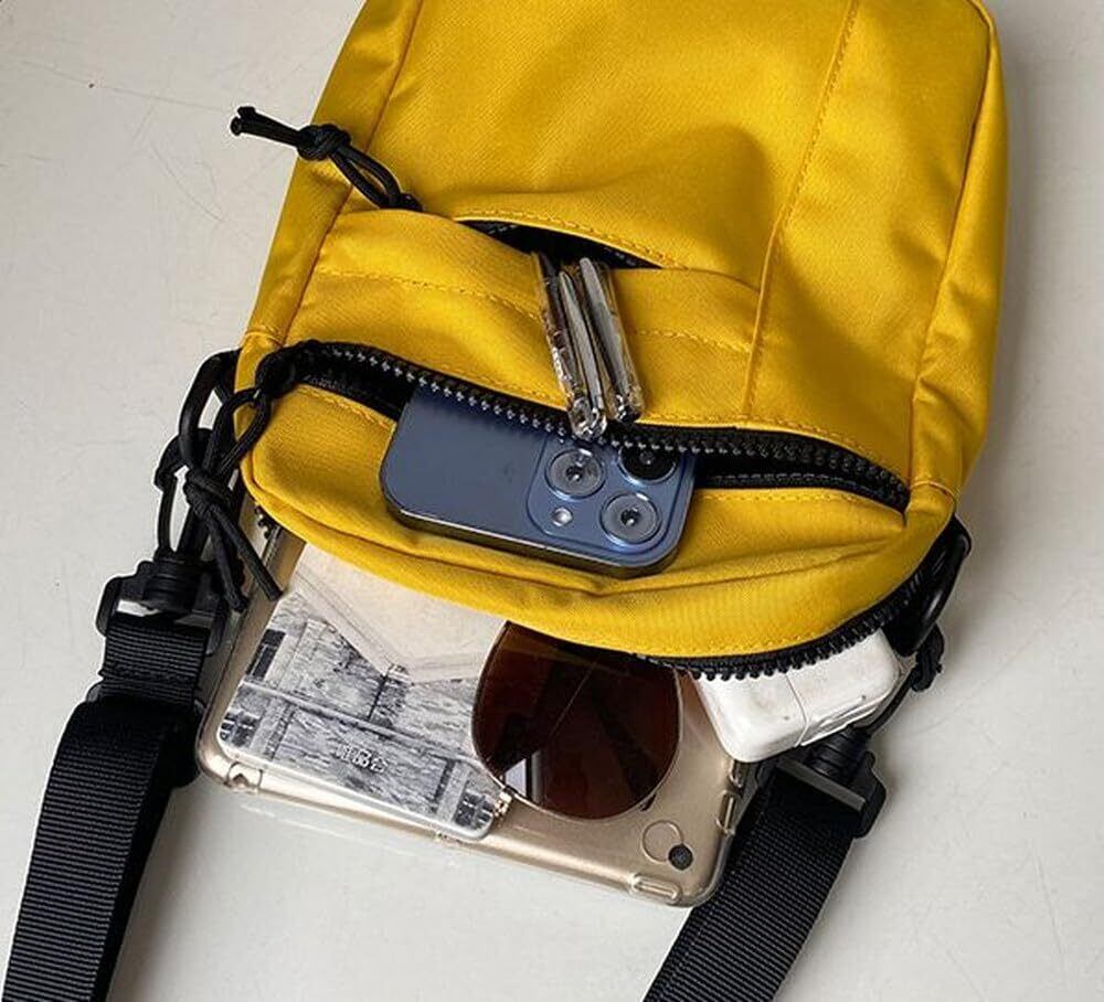 【収納力】500mlのペットボトルがすっぽり2本入る無駄のないサイズ感と収納力がちょうどいい!複数のポケットで荷物の整理ができ[飲み物とスマホとお財布]など普段の荷物がピッタリ収まる。