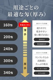 【優れた吸水性!】 : 160匁の高品質な素材を使用しており、一度の使用でしっかりと水分を吸収します。忙しい朝の洗顔時やお風呂上がりでも、手早く乾かせるので、時短効果も抜群です!