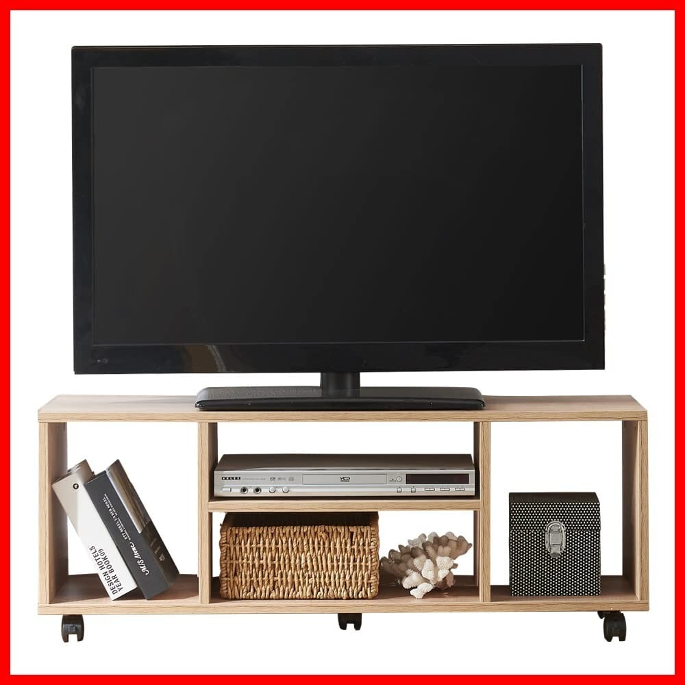 Vanlent テレビ台 キャスター付き テレビボード ローボード 幅1000mm 奥行296mm 高さ380mm 24型 32型 46型 移動式 (Free, ナチュラル)