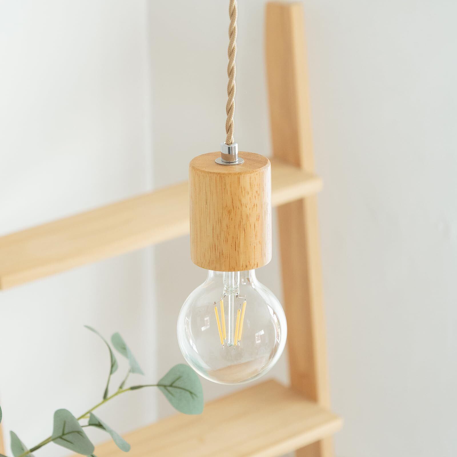 智光電気 天然木 ペンダントライト 裸電球 E26口金ソケット ナチュラルカラー 吊り下げライト 本革コードホルダー付き 工事不要 (ダクトレール用・電球付属・3灯セット)