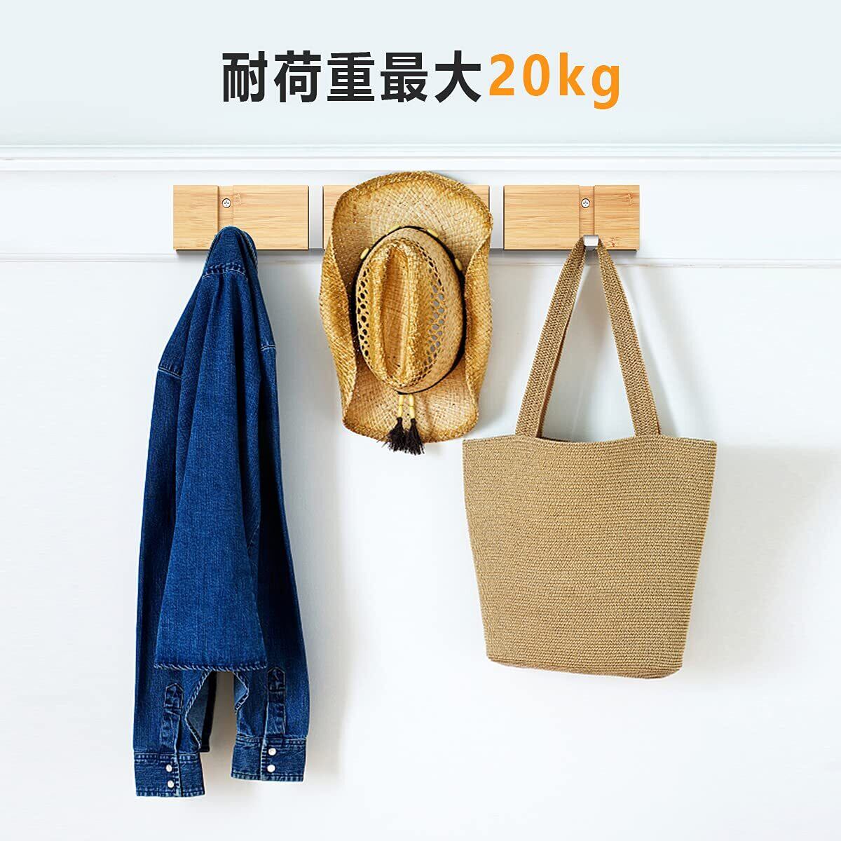 ● 商品名:Anjuer ウォールハンガー 壁取り付け式コートラック 5連フック 壁掛けフック 収納家具 物干しハンガー 帽子・洋服・コート掛け 木製(銀フック折り畳み型)