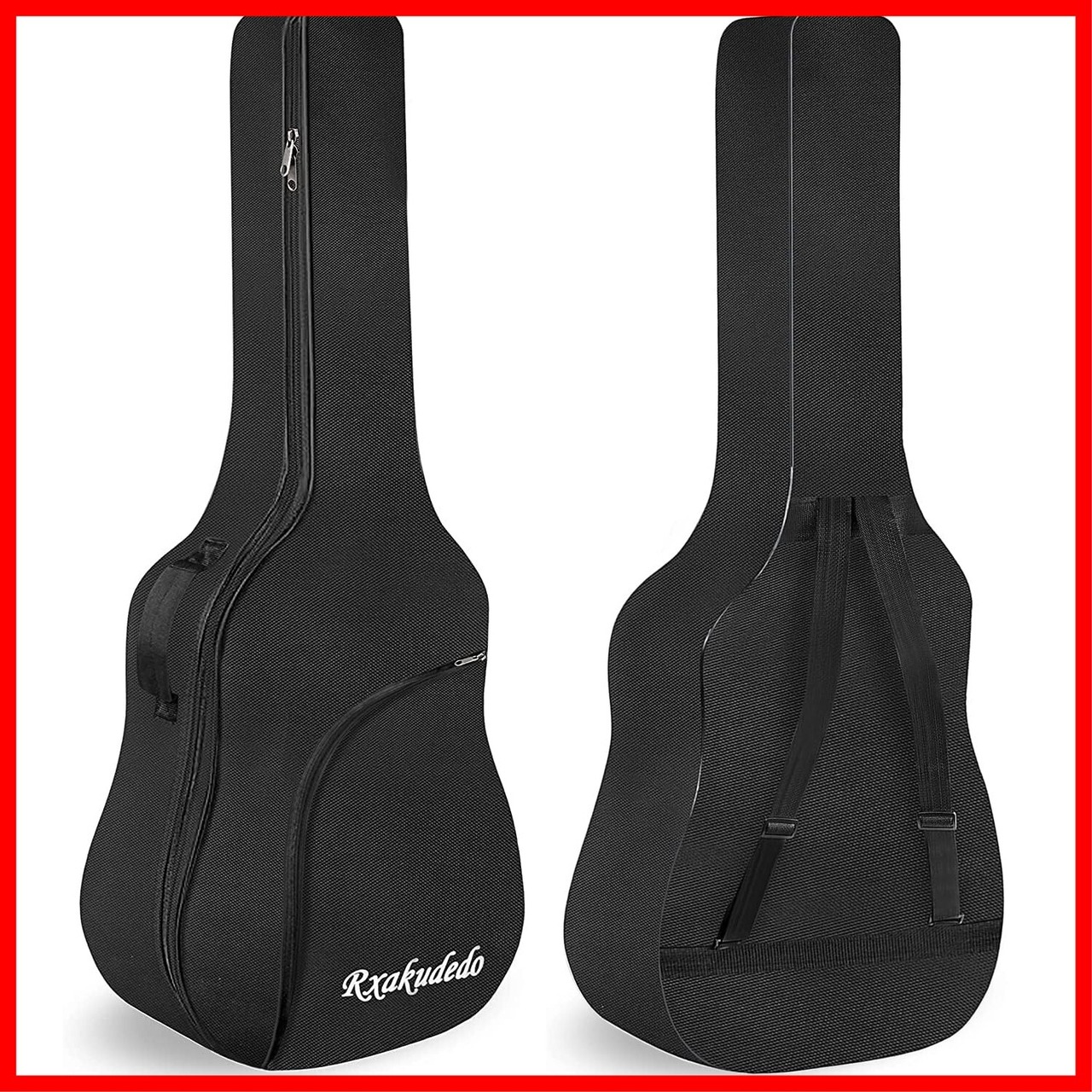 Rxakudedo ギターバック アコースティックギター用 ギグバッグ ソフトケース 40/41インチ(101.6cm/104.2cm) 2Way 背負い・手提げ両用 ポケット付き 防水 オックスフォード布 軽量 ブラック 107×42×14cm